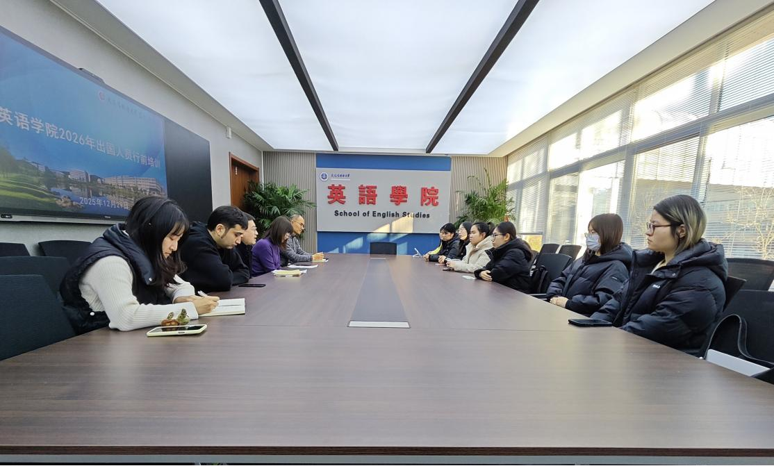 在励业楼A区109会议室举行2026年出国人员行前培训会。学院党委书记梁若冰、院长吕春媚、副院长王成东、国际交流外事秘书黄新智、带队教师达尼亚尔江·亚力坤江以及参加美国圣地亚哥寒假研学和新西兰奥克兰大学交流生项目的学生参加了本次培训。