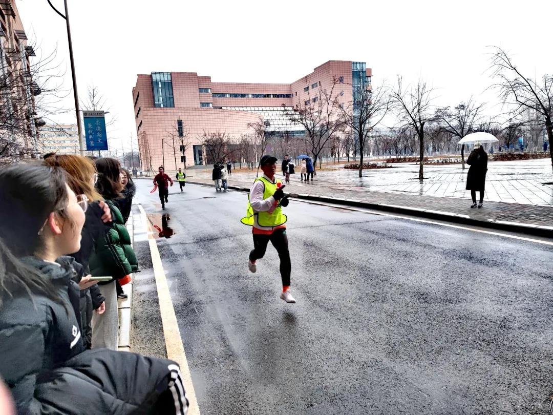 士气大增,运动员们越战越勇,稳稳保持着第一的名次;第三棒左文惠和第四棒李勇在面对众多强劲对手的情况下发挥了自己的最大潜力;在其他两支队伍和我院队伍几近并列的状态下,第五棒汪雪梅顶住压力保持住了第一的优势;第六棒任永前和第七棒孔庆娟接棒配合得当,八棒张天启也以非凡的体力和耐力稳占前列,九棒宋昭静调整节奏,成功让我院队伍领先数百米;在娱乐游戏