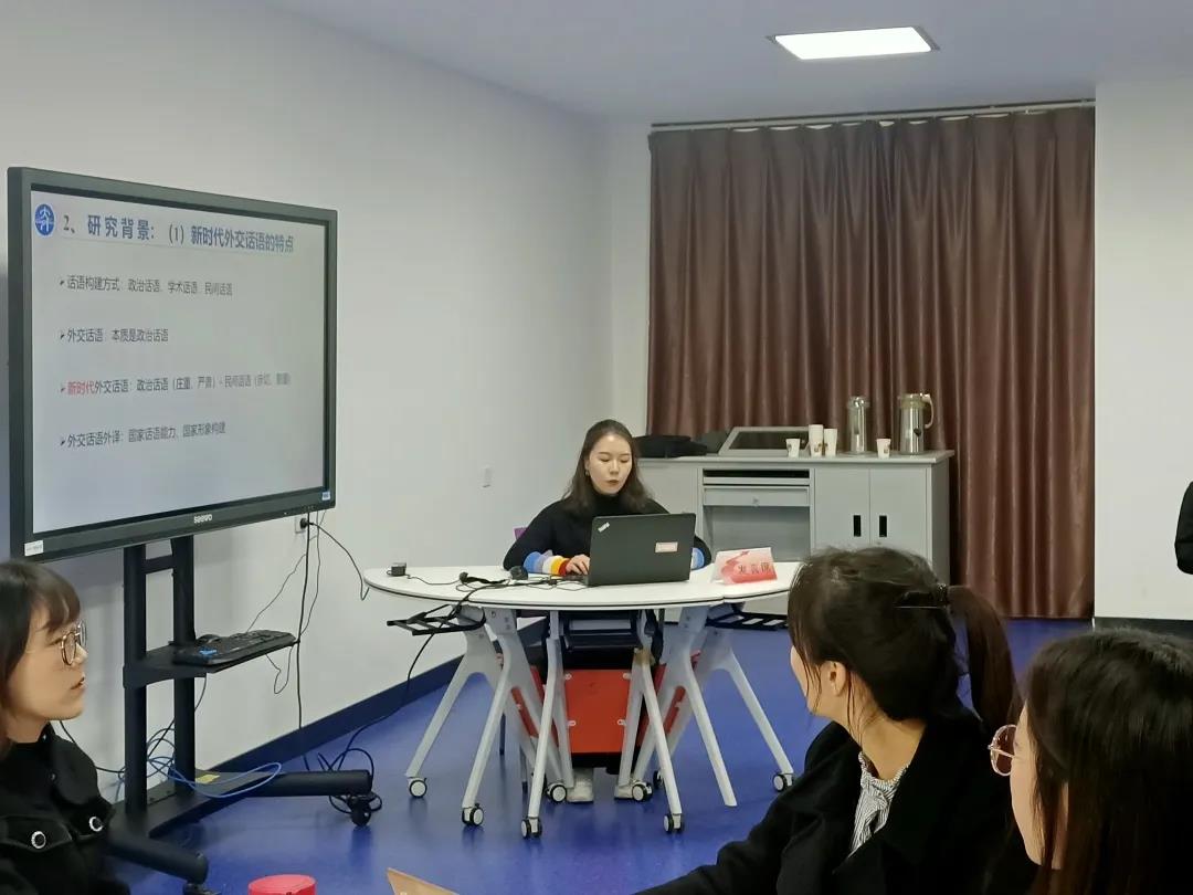 在分论坛现场,蒋瑞函、周雪、王欣、赵滦文分别就外交话语中的民俗语言翻译、CLI课堂的教师多模态反馈、民族身份中的认知指示表征、玛丽安•摩尔诗歌中的身份解构等话题进行发言。周领顺教授、陆丹云教授等多所高校的专家学者对论文的创新性及可行性给予一致认可,同时从论文撰写与发表、定量定性分析模式、研究设计与方法等方面提出了宝贵且中肯的建议。