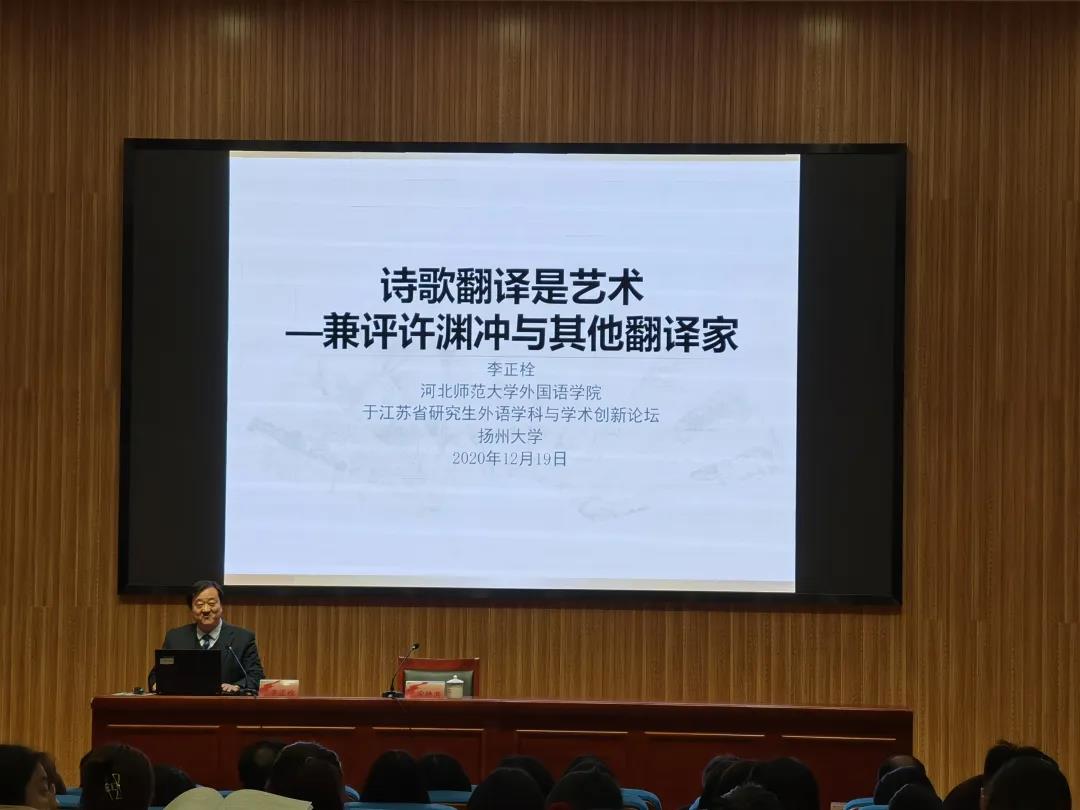 2020年12月19—20日,来自江苏、安徽、辽宁三省共25所高校近百名外国语言文学学科博士、硕士研究生相聚扬州,参加2020年度江苏省研究生外语学科交叉与学术创新论坛。本次论坛由江苏省文学类研究生教育指导委员会主办,扬州大学外国语学院承办。在研究生教研室主任林璐教授带领下,我院2018级研究生赵滦文、2019级研究生蒋瑞函、王欣、周雪参加了此次论坛。论坛上,四位同学围绕当下前沿主题精彩发言,现场表现受到点评专家的高度认可,最终获得二、三等奖各一项,优秀奖两项。