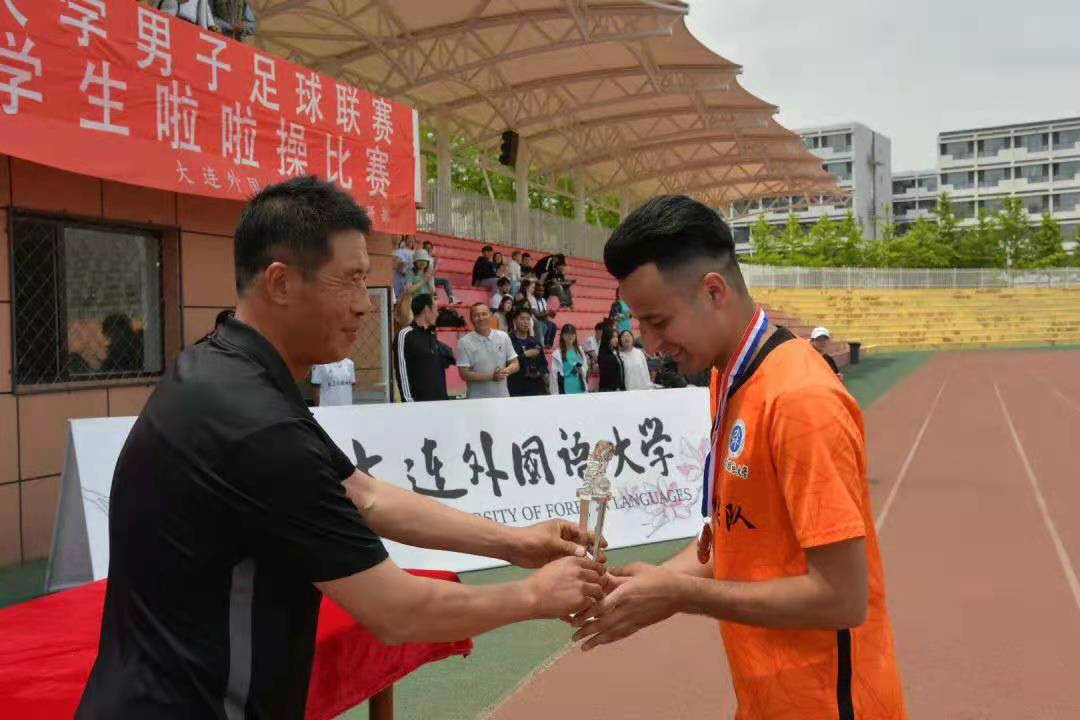 5月26日中午,2020-2021赛季大连外国语大学男子足球联赛颁奖典礼于我校风雨操场举行。