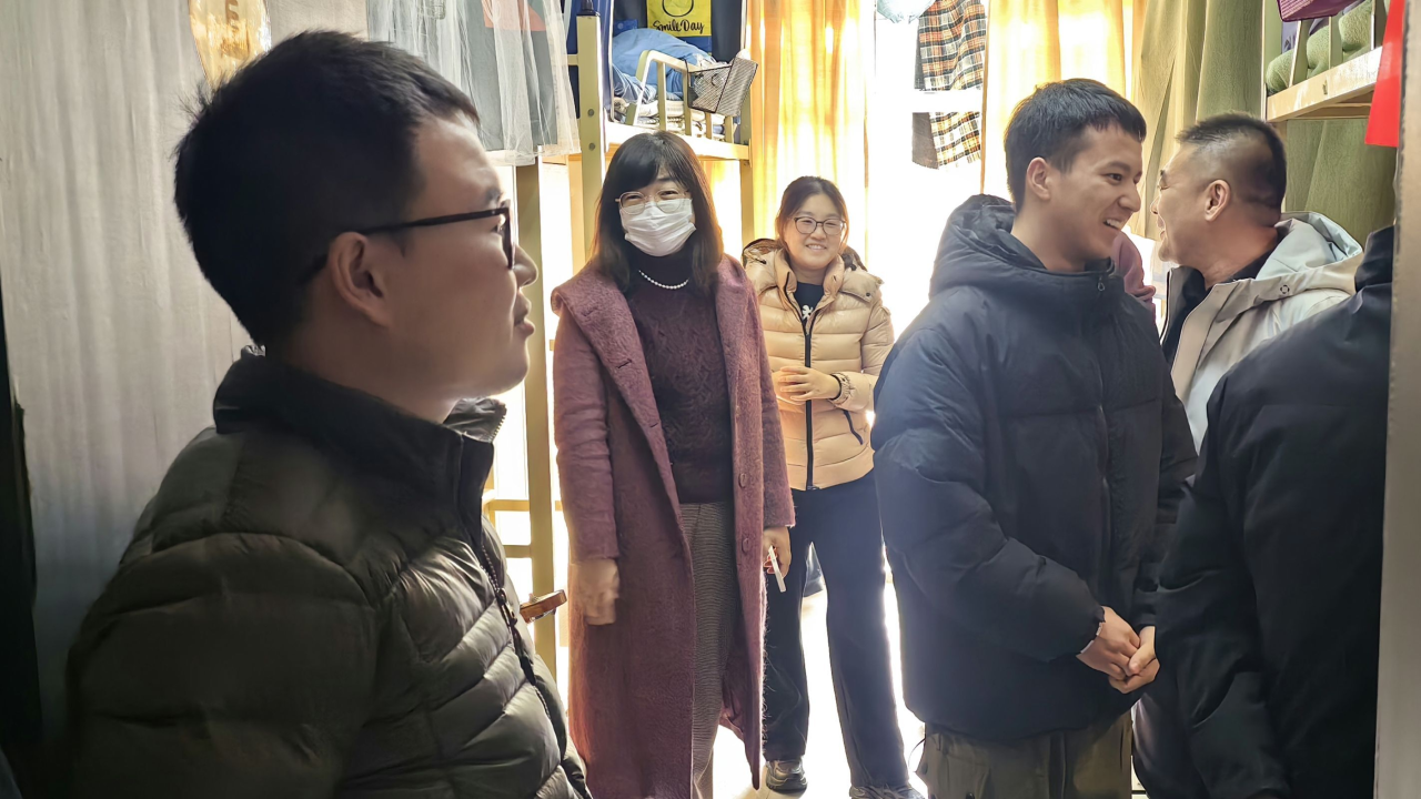 领导老师们先后走访了书香苑3号楼和5号楼宿舍,检查学生日常内务并与同学们交流课业生活,热情且耐心地回答了同学们有关生活与学业的问题。老师们叮嘱23级同学们重视期末考试,提醒同学们相关考试事宜,建议大家放松心态,坚守诚信考试原则,并在假期里对考试中暴露的问题进行针对性训练。最后,领导老师们提醒同学们注意保暖,在新的一年里万事顺遂,并预祝同学们考试顺利,度过愉快的假期生活。