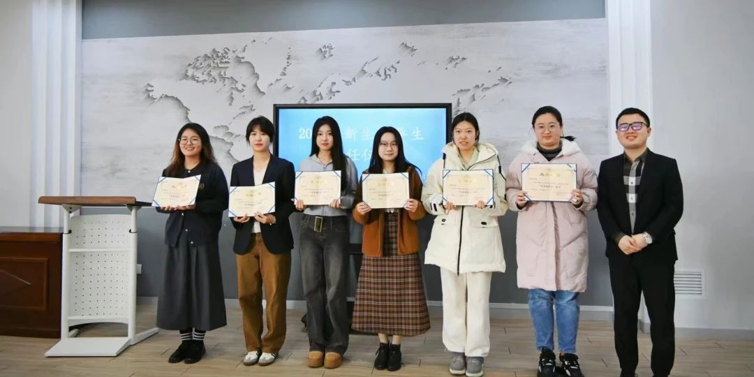 孙书记、曲老师和吴老师分别为新生助理及班导生们颁发聘书,认可他们在过去一学期中的工作表现与工作成绩。随后各班新生代表为班导生送上小礼品,并为他们献上最真挚的祝福。孙书记对2023级新生班导生的工作给予了高度评价,希望班导生们能够继续保持良好的工作态度和工作作风,不断提高自身素质和能力,为同学们提供更好的指导与帮助。在仪式最后,全体参会人员进行了合影留念,记录下这个特殊的时刻。这次聘任仪式不仅是对班导生们工作的肯定,也是对新生们的激励与鼓舞。