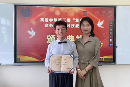 最终,经过评委老师们的公正评选,综合商务知识竞赛和商务演讲比赛两个环节的成绩,中级组和高级组共评出一等奖两名、二等奖四名、三等奖五名,优秀奖两名。