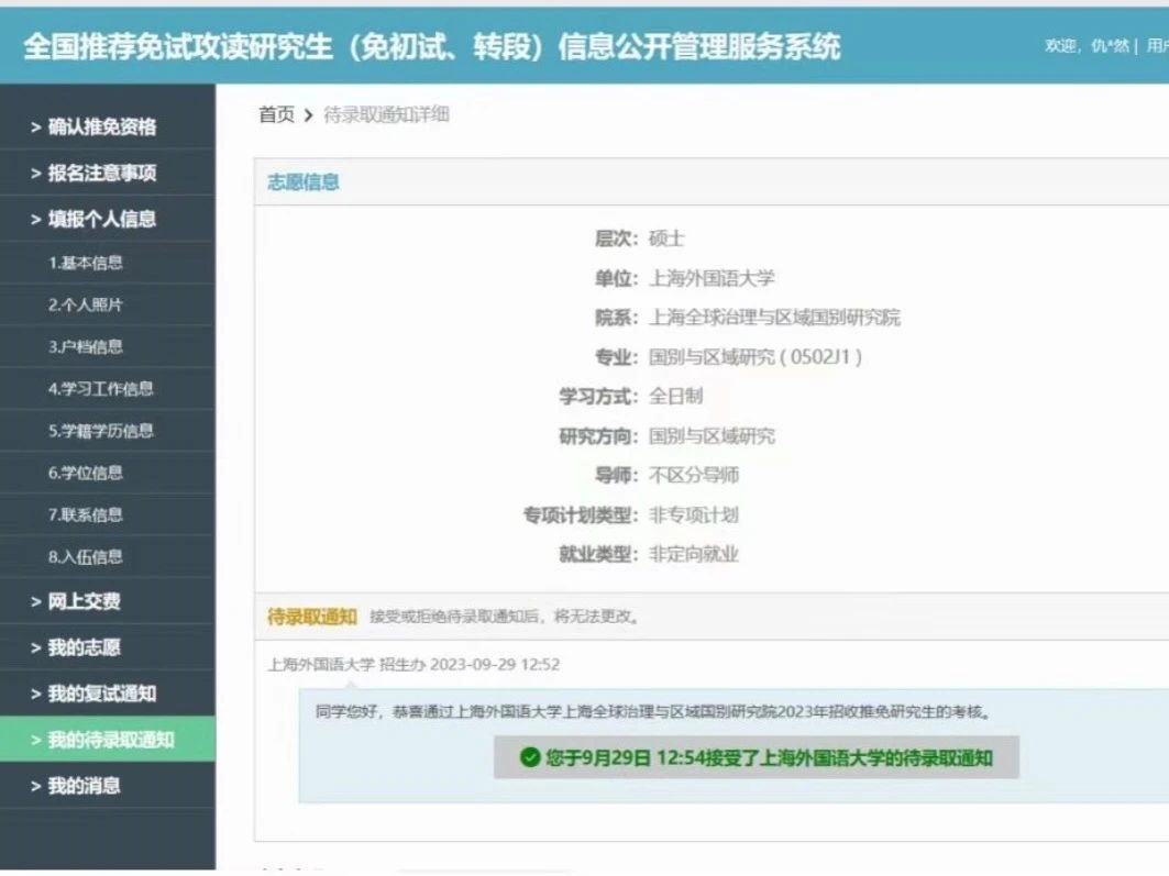 优质的教育资源、多元的发展机会与领导老师的关怀鼓励激发了她追求更好生活的动力和信心,最终她不负众望,成功推免上海外国语大学国别与区域研究专业,怀揣着感恩之心和社会责任感向着更加光明的未来继续前行。