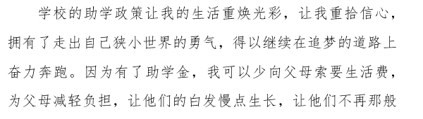 响应学校号召开展“助学·筑梦·铸人”主题征文活动。本次活动为受助学生提供了一个表达自我的平台,让他们有机会讲述自己在接受资助过程中的亲身经历、内心感受以及成长与转变。这不仅有助于受助学生梳理自己的心路历程、增强自我认知,也让其他同学在阅读这些充满奋斗与拼搏精神的故事时受到鼓舞和激励。