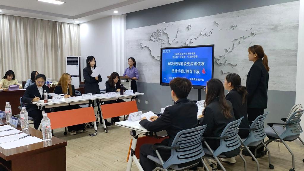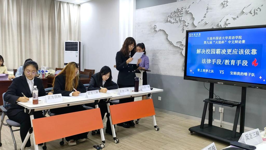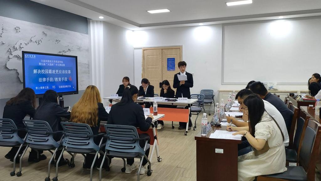 第九届“火焰杯”中文辩论赛决赛于励业楼爱尔兰中心成功举办。大连外国语大学国际关系学院分团委书记侯培岩老师、欧洲语言学院辅导员王静业老师、娱乐游戏平台大全