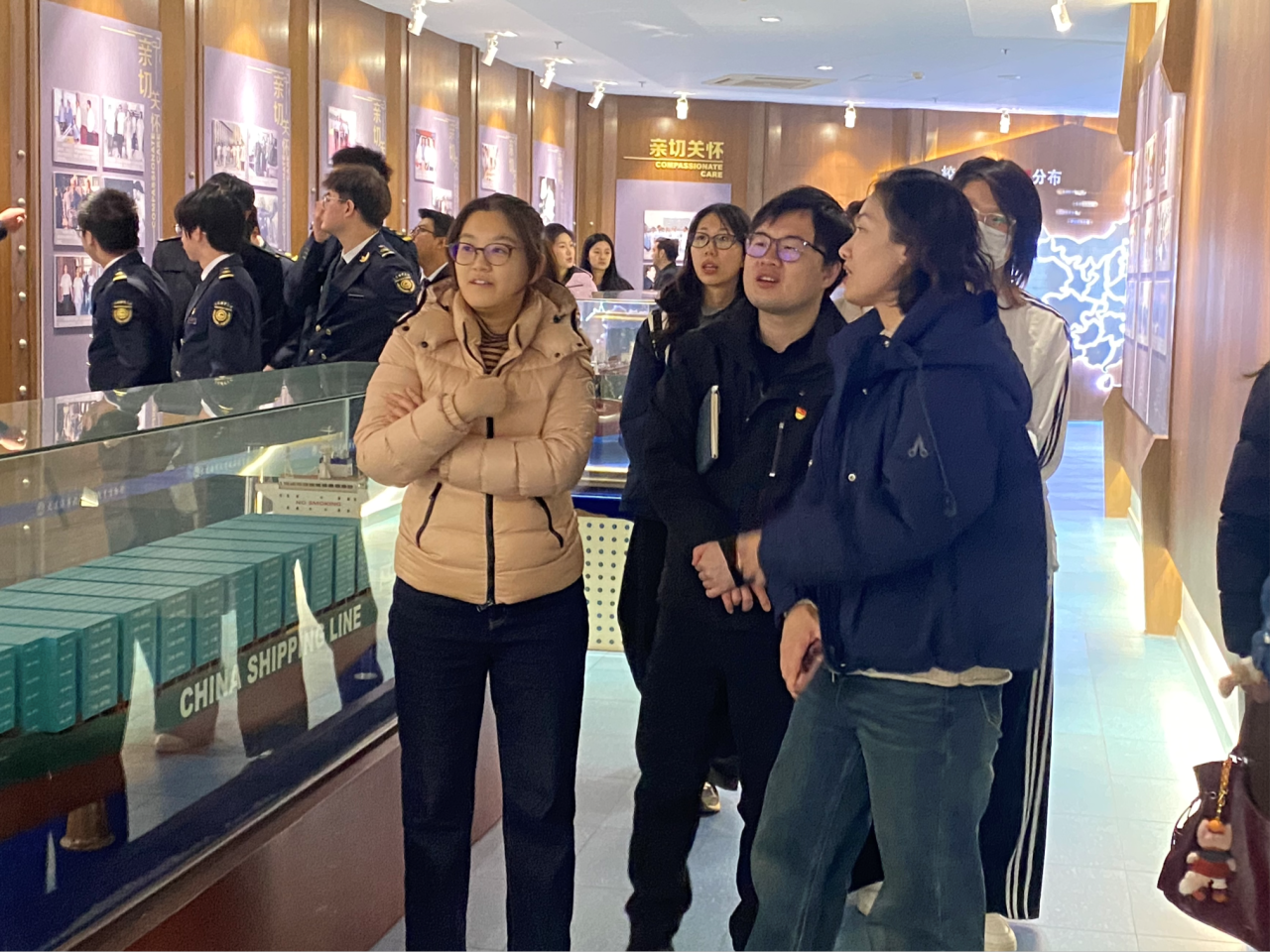 随后,全体党员一同参观了大连海事大学航海教育博物馆和新图书馆。在博物馆内,大家通过丰富的展品深入了解了中国航海事业的辉煌历程与“海洋强国”战略的实践。在新图书馆,党员们切身感受了现代化学习氛围与浓厚校园文化的融合。此次实地参观加深了全体党员对航海文化的认识,同时切实增强了同学们服务国家战略的责任感与使命感。