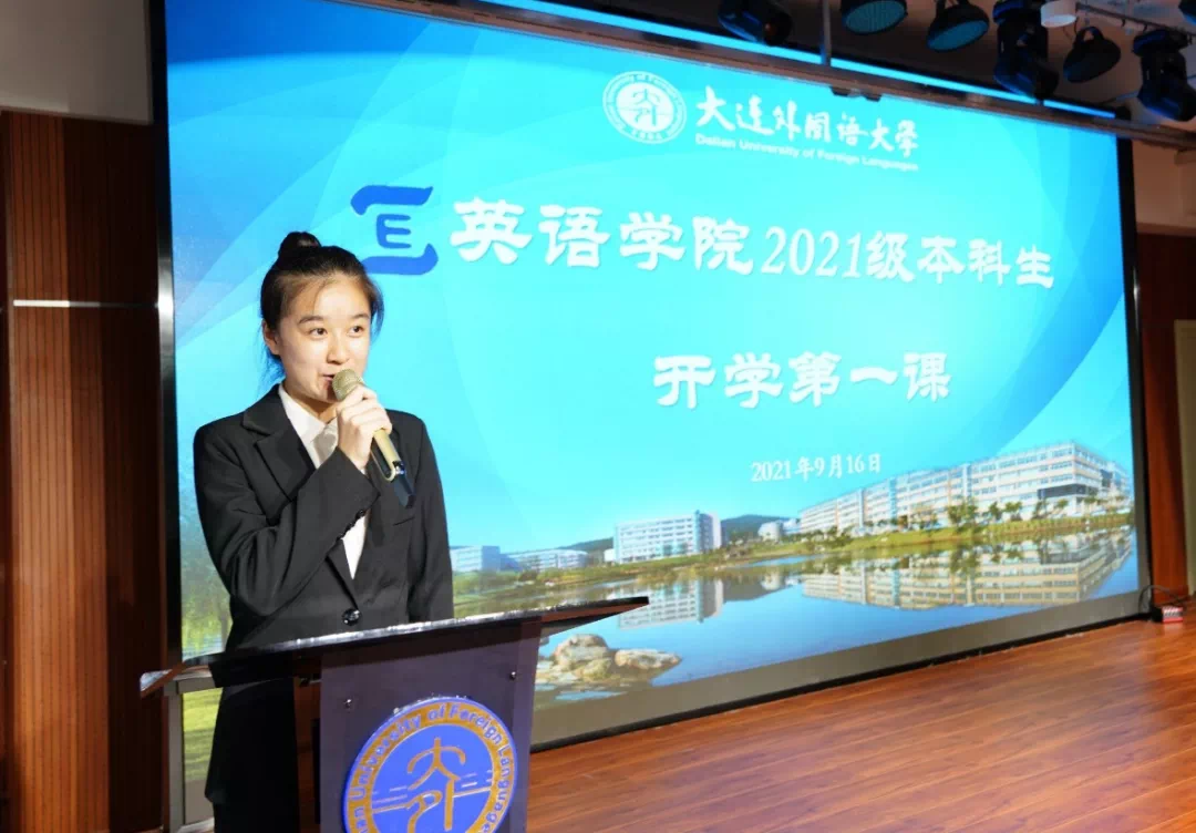 2021级张依然同学代表全体2021级新生发言。张依然同学率先代表全体2021级新生向为新生入学准备工作中辛苦筹划的师生们表示真挚的感谢,并呼吁2021级新生在未来的生活中严于律己,宽以待人,树立主人翁意识,珍惜时间,努力提高自身专业素质及综合素质,勇做顺应时代需要的新青年。