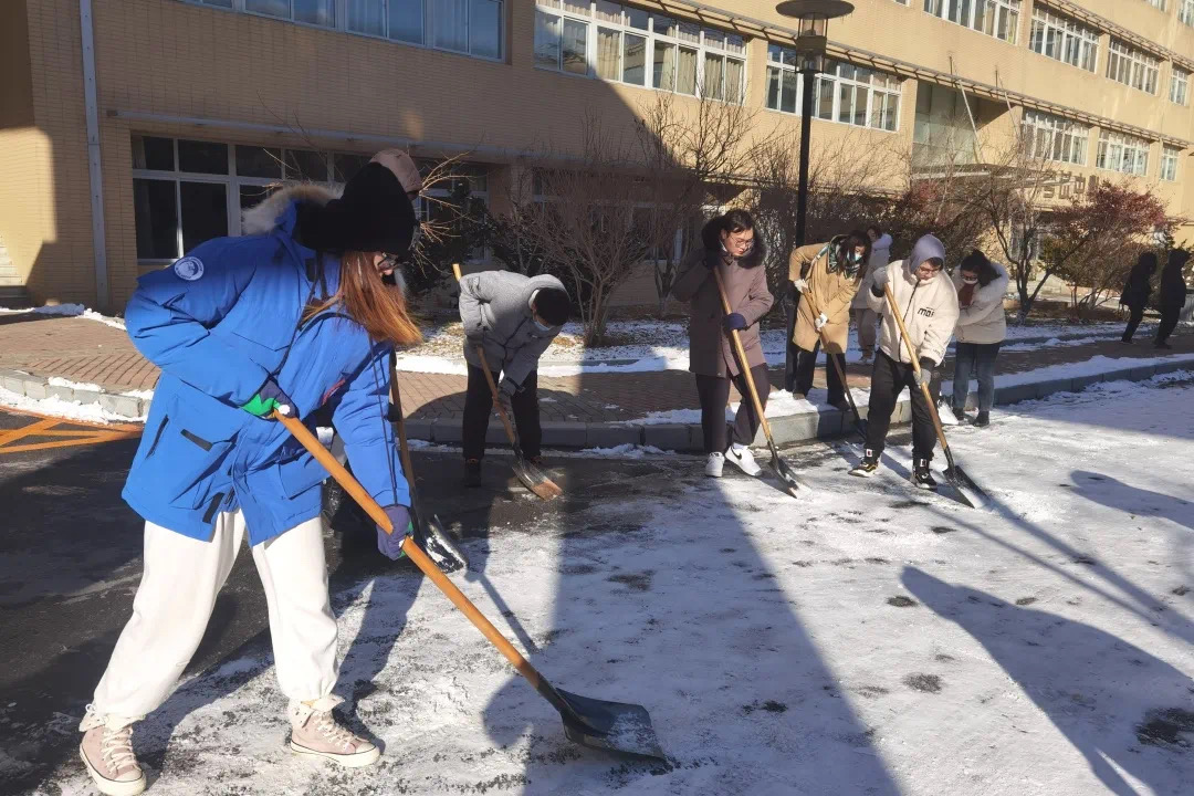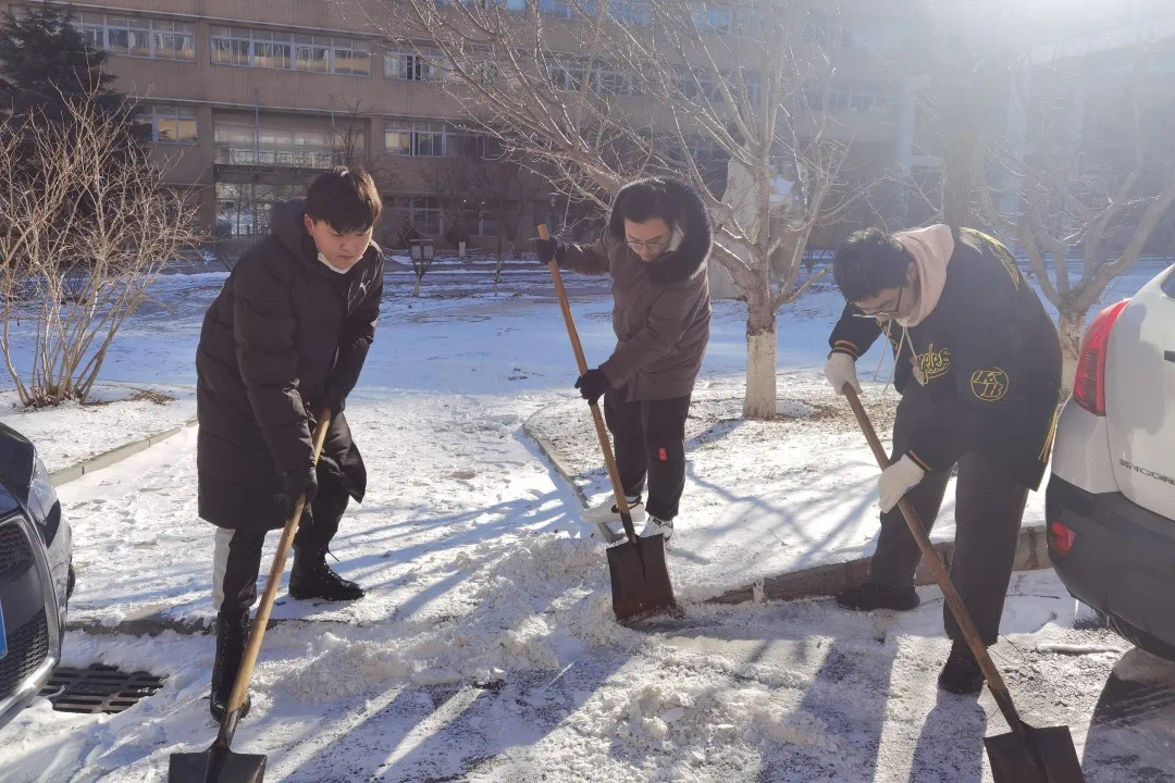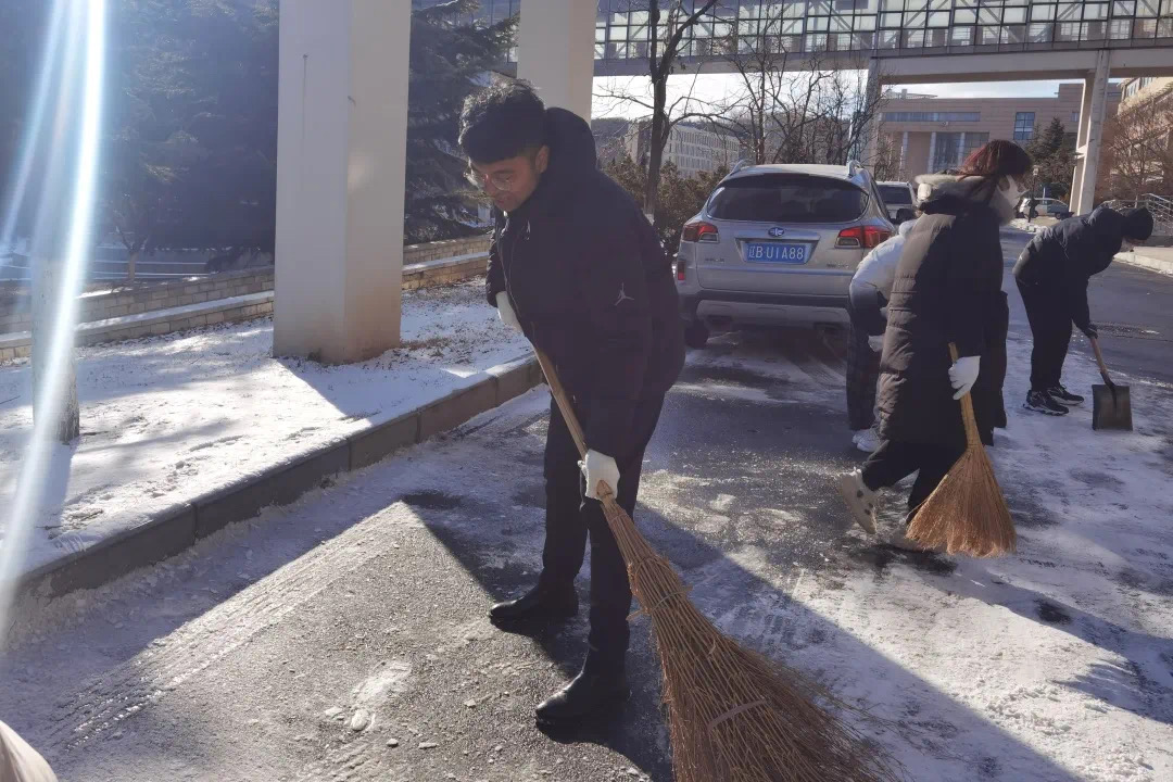 刺骨的寒风和持续不断的大雪,给同学们扫雪带来了巨大困难。广大党员冲锋在前、不惧挑战,起到了良好的示范带头作用。志愿者同学们紧随其后、齐心协力,共同清扫路面积雪。一张张脸、一双双手被冻得通红,但同学们依旧坚持,顶着寒风大雪继续志愿扫雪活动。石以砥焉,化钝为利。在大家的共同努力下,湿滑的路面被清扫干净,保证了老师与同学的出行安全。