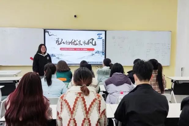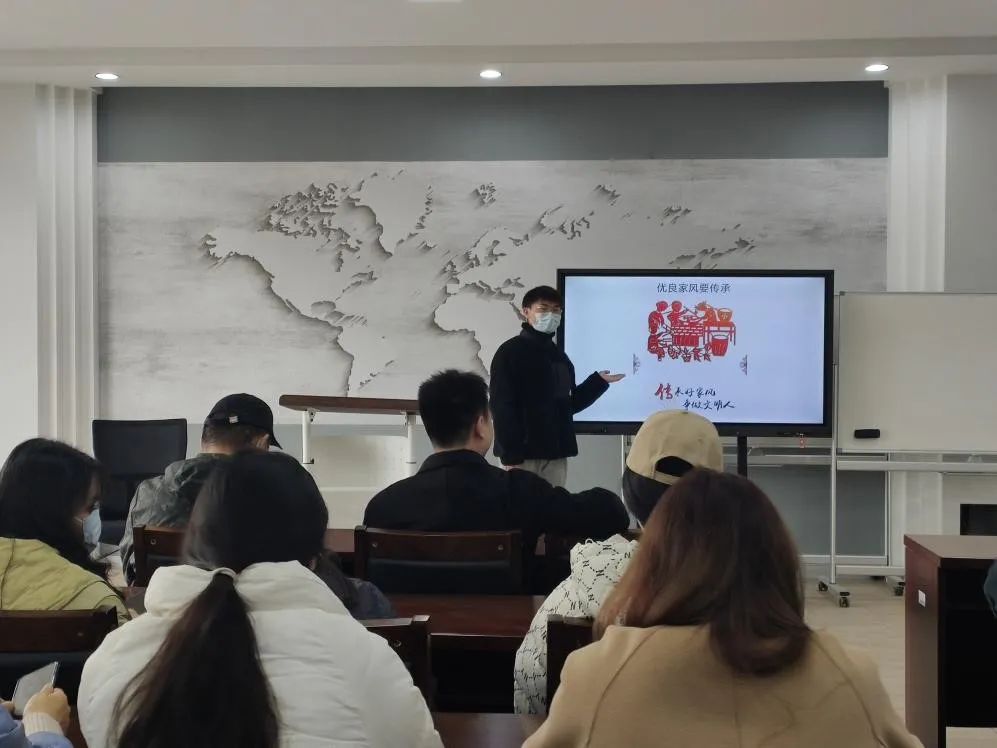 活动中,各班班长首先为同学们展示了钟南山院士、莫言先生等知名大家关于传承优良家风的观点,并放映《吾家吾国》主题视频,进一步加深同学们对家风家训的认识。“家是最小国,国是千万家”,通过家风透视国风,传温良之家风,润青年之无声。