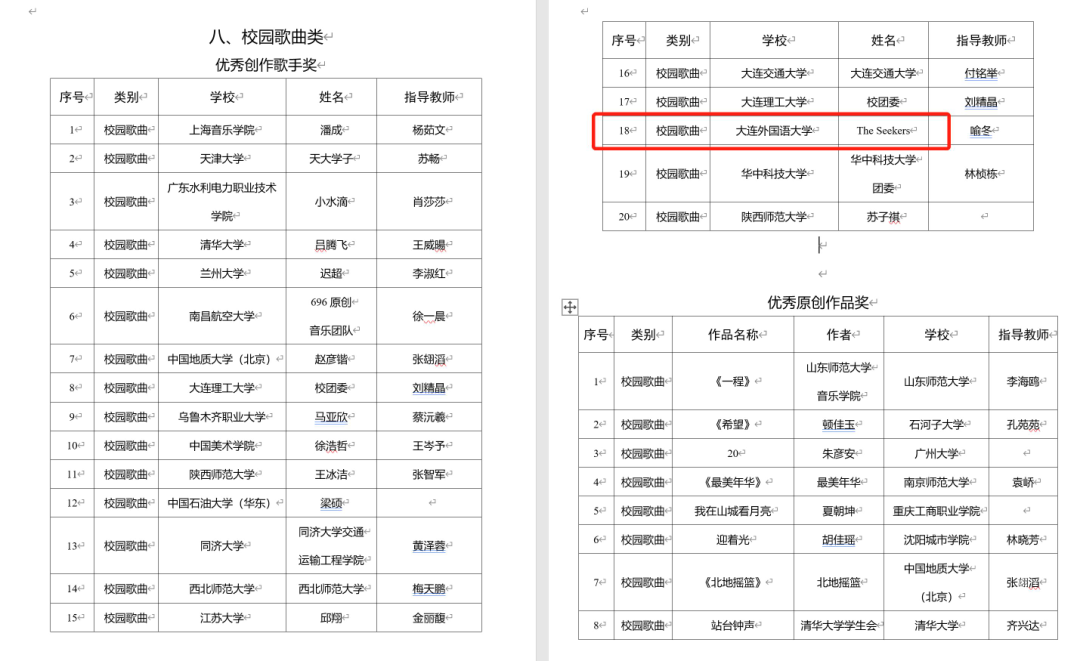 近日,教育部、中央网信办公布了第五届“全国大学生网络文化节”和“全国高校网络教育优秀作品推选展示活动”遴选结果。我院The Seekers乐队通过层层选拔,荣获校园歌曲类优秀创作歌手奖。