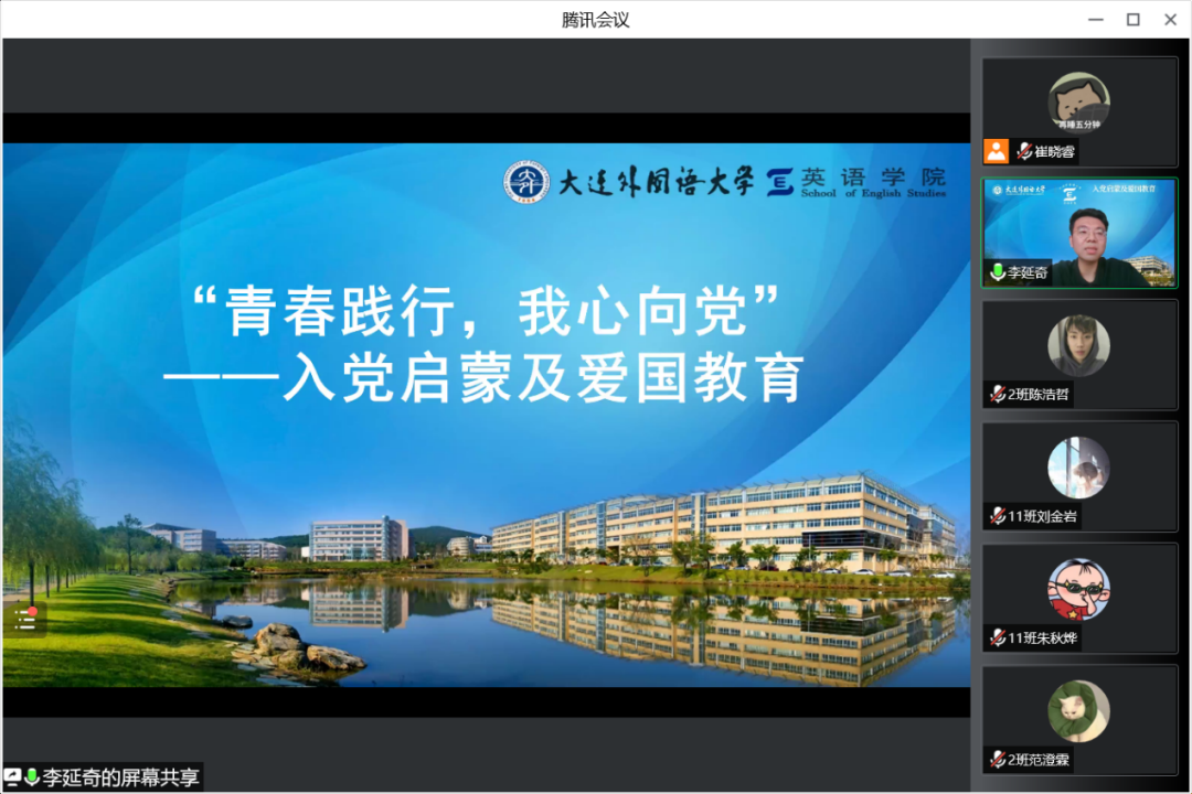 “青年走在时代的前列,是时代发展不可或缺的角色。”李延奇老师首先指出青年人需要正确站位,如今的伟大事业给青年的发展提供了无限可能。而后,李延奇老师播放了有关入党动机的视频,并从认识中国共产党、端正入党动机、入党流程三个部分对新生进行了入党启蒙教育。