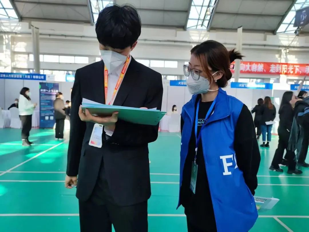 11月5日上午10点,大连外国语大学2023届毕业生秋季招聘会如期召开。招聘会现场,志愿者们有序开展工作,对接企业的志愿者同学们负责维持各展台秩序,引导面试者们有序面试;而后勤保障的志愿者同学们则向参会人员提供N95口罩,同时向各展台提供纸笔、饮用水等必需品。