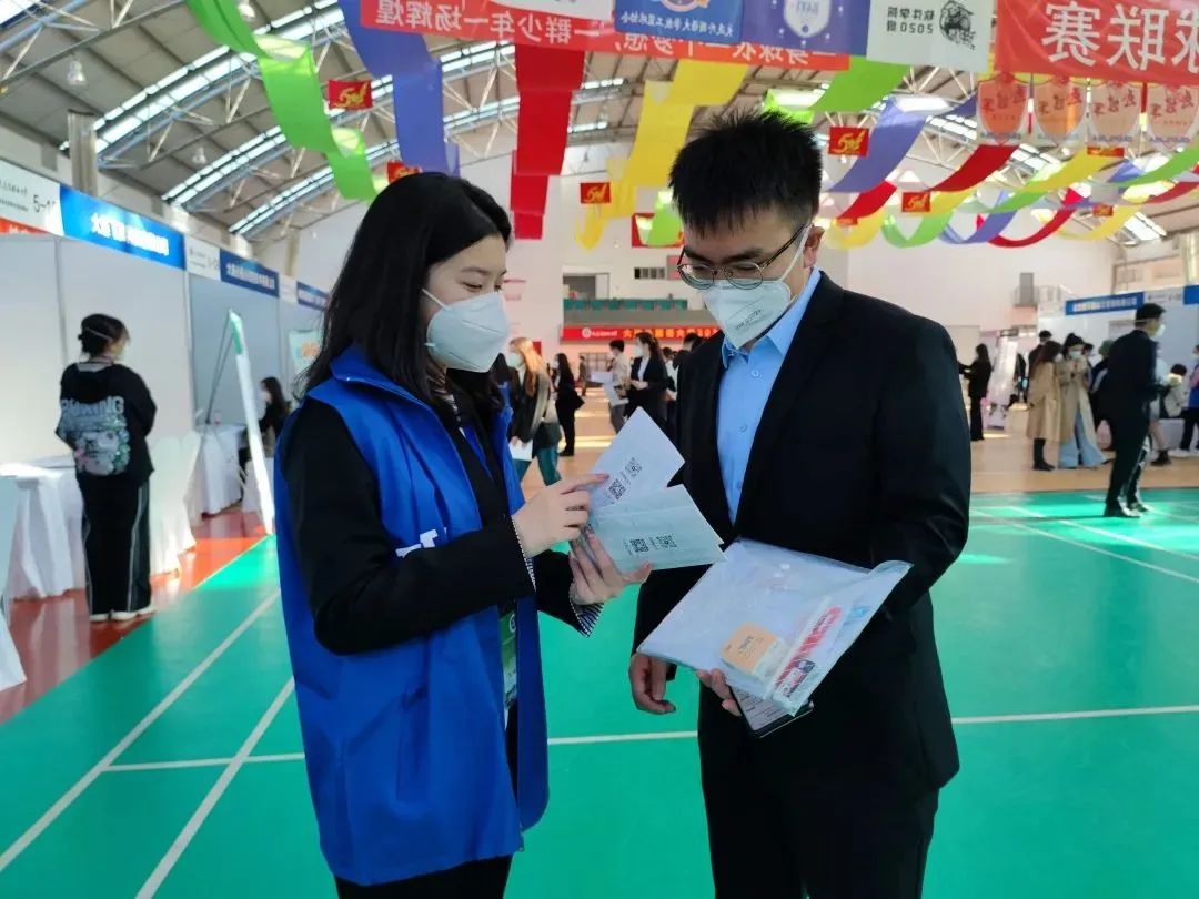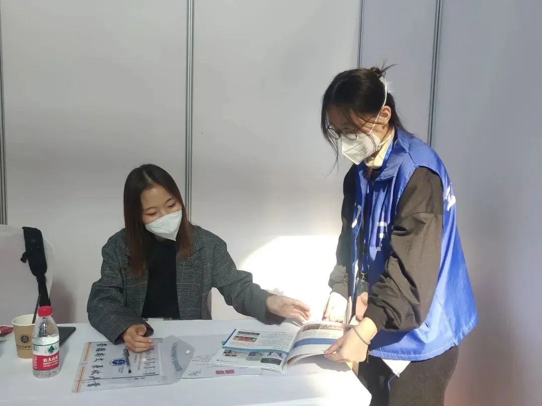 安排志愿者与招聘企业进行点对点的对接。志愿者在前期联系企业负责人时,不仅需要确定参会人数、姓名、到校方式、其是否途径风险区,确认各位参会者健康码是否正常并持有到校前48h核酸检测阴性证明,严格落实学校防疫措施。到校后,由志愿者负责将各位参会人员接引到对应的展台上,实现闭环管理,从各个方面保证招聘会的顺利举行。
