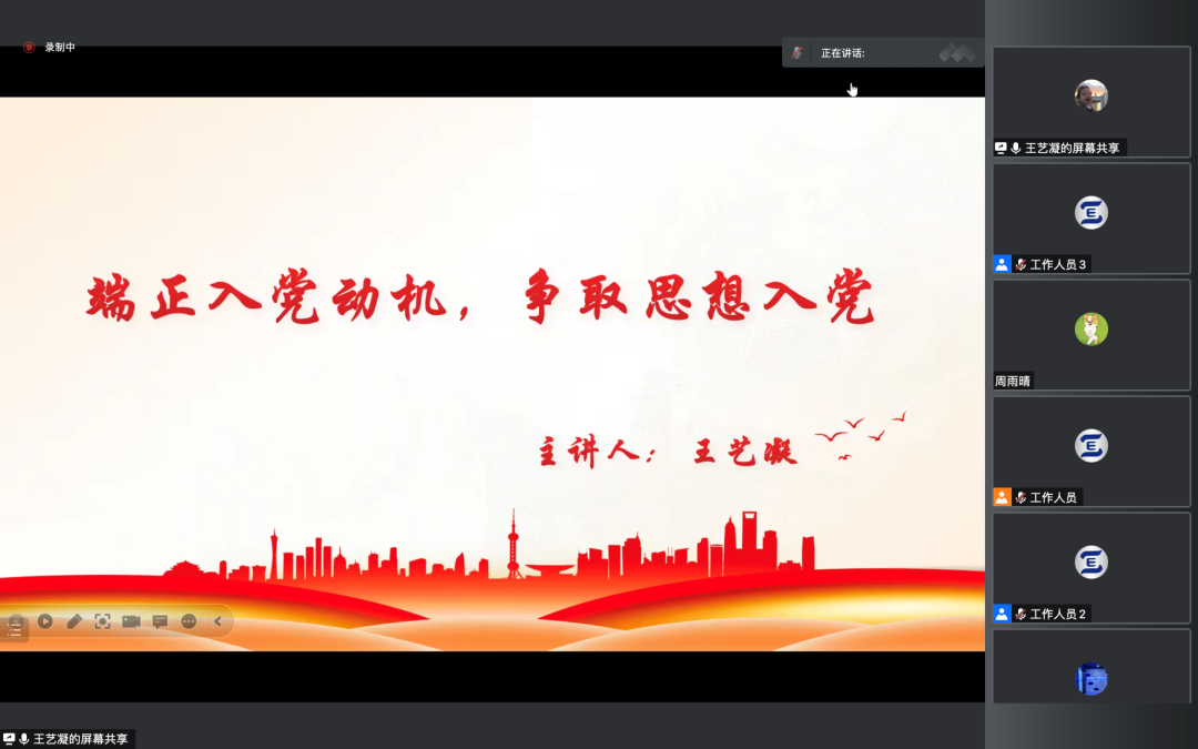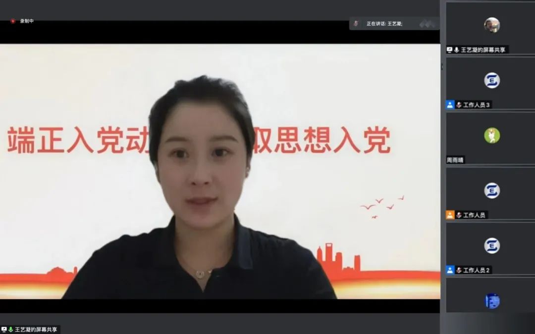 本科生第二党支部书记王艺凝就“端正入党动机,争取思想入党”这一主题和同学们开展了讨论。