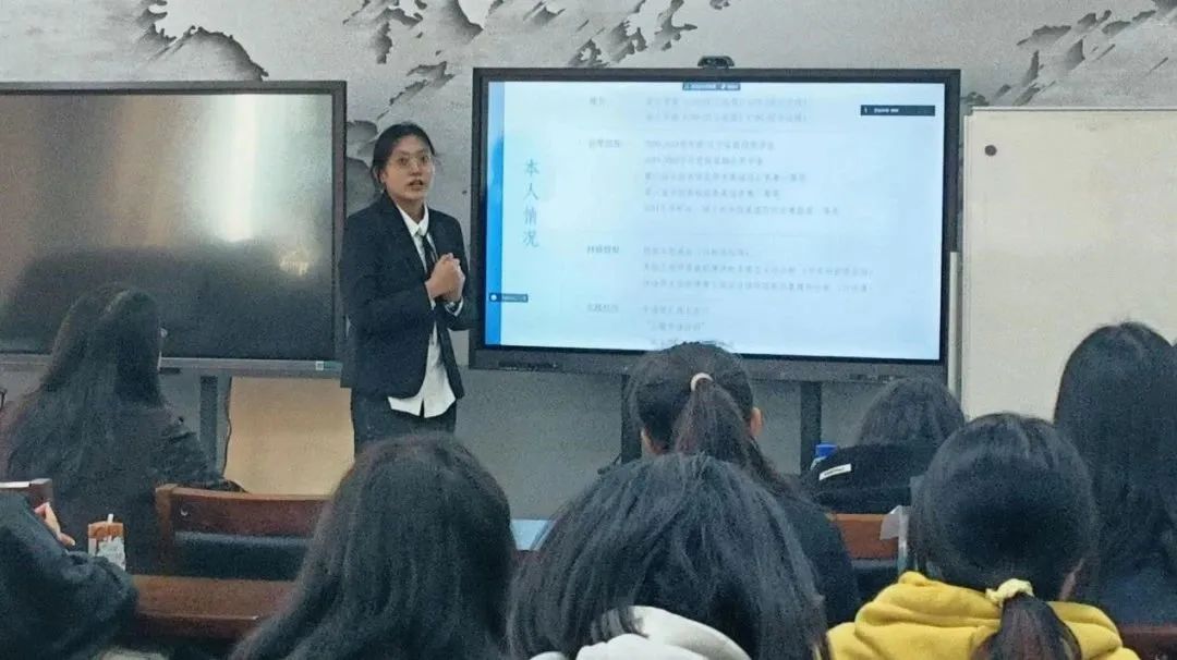 作为保研厦门大学的优秀典范,杨涵同学分享了成功上岸的经验。杨涵同学指出,优秀的学业成绩和丰富的个人履历是保研必不可少的先决条件。而后,结合自身经历,杨涵同学向与会同学们介绍了著名大学夏令营的基本信息、考核内容和重点难点,为有志保研的同学们提供清晰思路。杨涵同学强调,过硬的专业实力和强大的心理素质都是成功上岸的砝码,同时令人印象深刻的简历也可达到事半功倍的效果。最后,杨涵同学向同学们表达了美好祝愿,希望同学们都能上岸心仪高校。