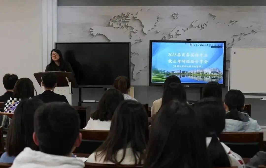 2023届商务英语专业九位优秀毕业生进行经验分享,商务英语专业四个年级近百名同学参与本次经验分享会。