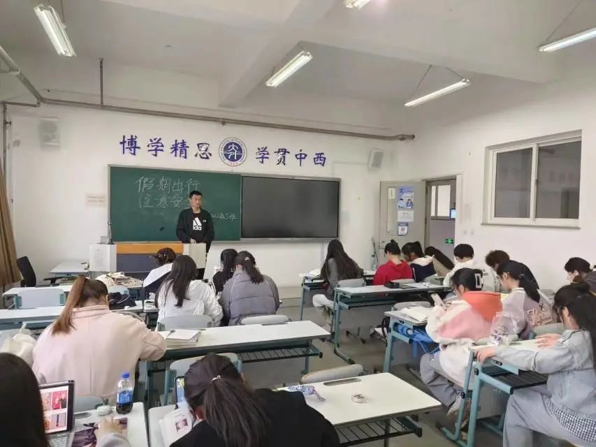 各年级召开五一假期安全教育大会,在介绍人身财产安全等相关注意事项的同时,再次强调了安全出行的重要性。