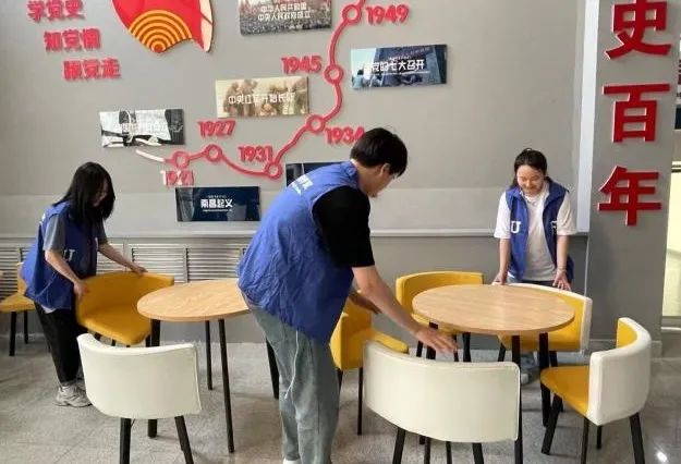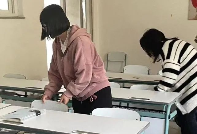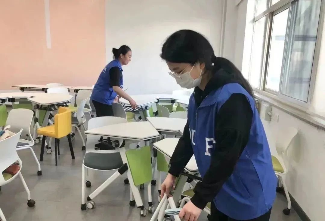 组织成立青年突击队,迅速划分小组,进行分工,对公共教室和智慧教室的卫生进行打扫,摆放桌椅,擦拭灰尘,致力于号召同学们主动参与到劳动实践当中。