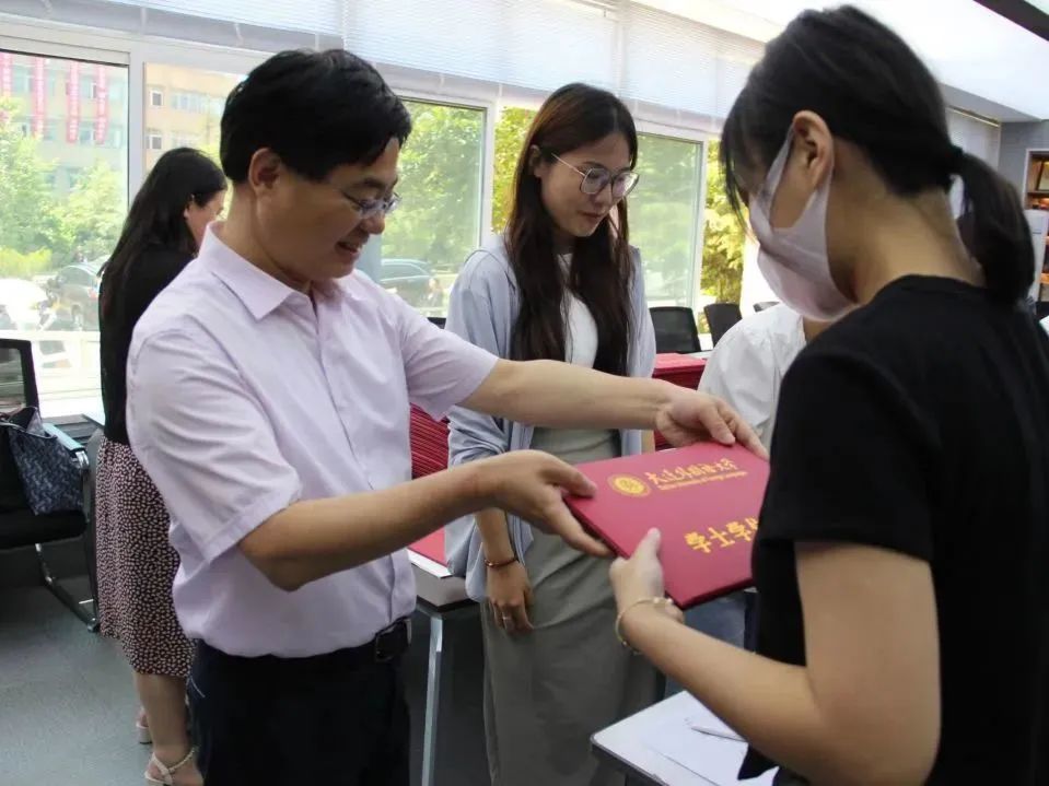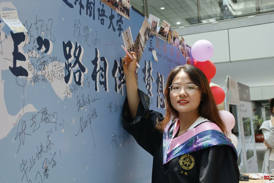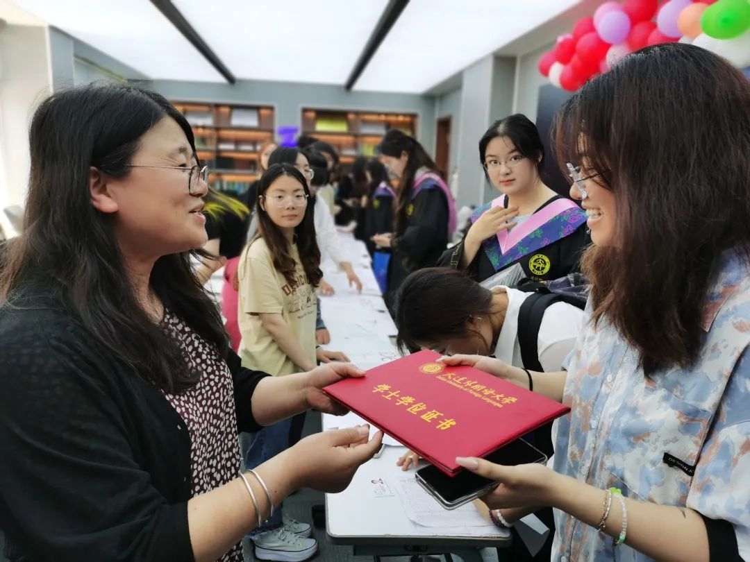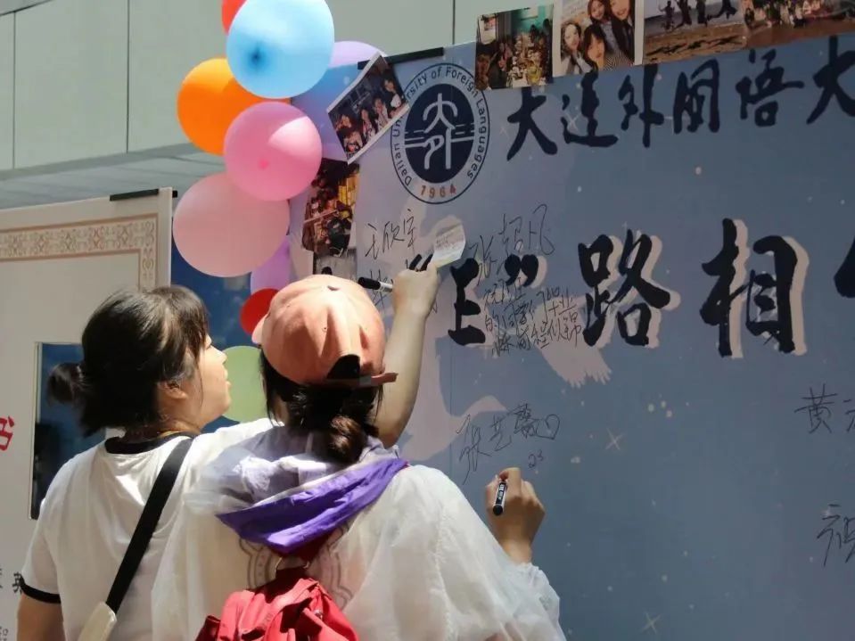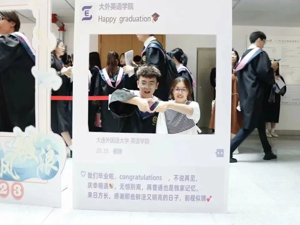 院长吕春媚、党委梁若冰副书记、党委副书记兼纪委书记孙硕、副院长曲涛、副院长刘晓晖、副院长王成东、硕士研究生导师孙鑫教授、王卉教授、2023届毕业生辅导员曲镜达及吴曼各位老师莅临现场前往祝贺,并与毕业生们拍照留念。看着曾经熟悉的面庞,老师和同学们纷纷湿了眼眶,感慨时光如梭。同学们在留言板上签下名字,似是为那段悄然而逝的时光画上最后的句号。