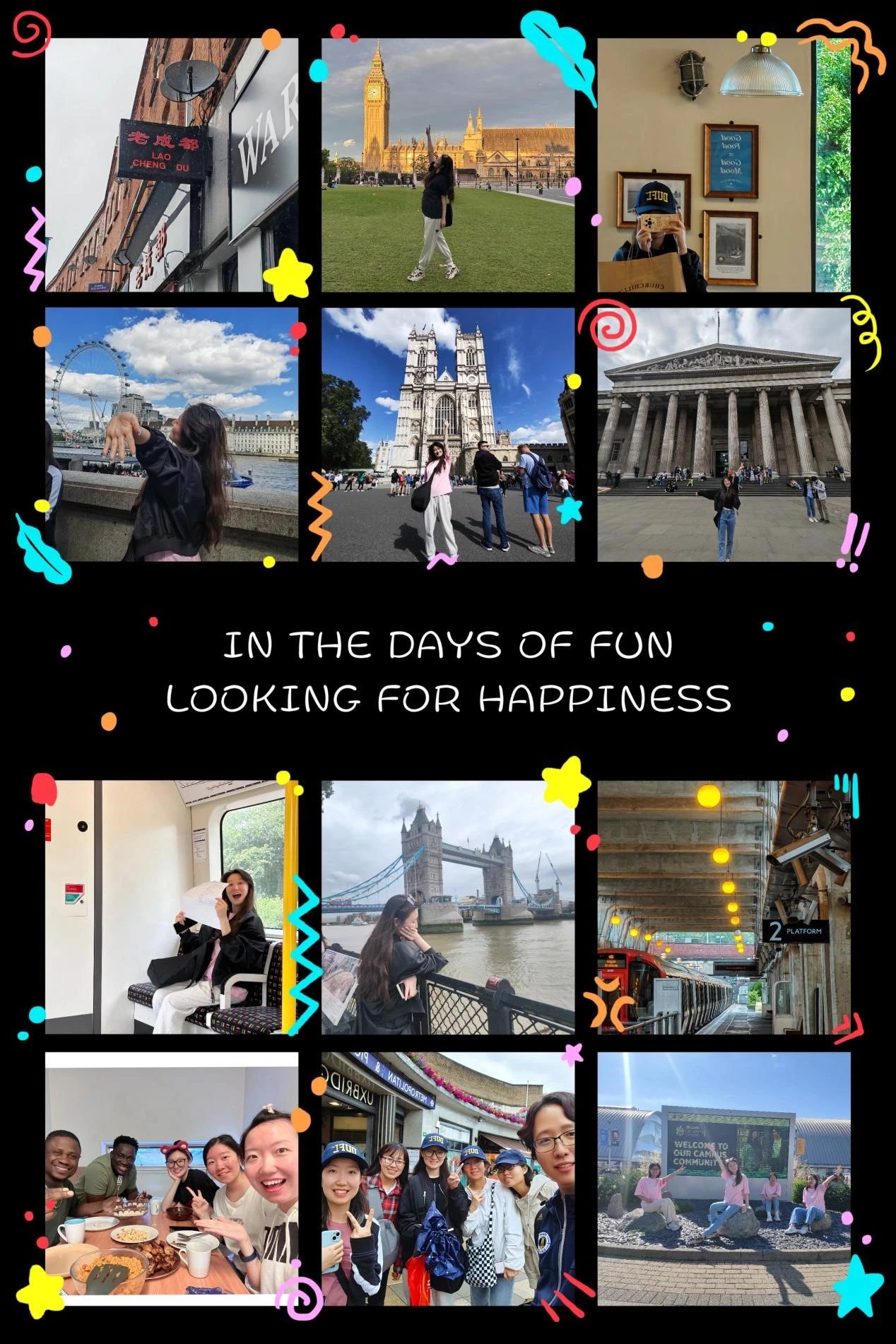其次,从布鲁内尔大学进市区游玩时,我和伙伴及老师做了许多攻略。我们需要计划好出行时间,出行方式以及游玩路线。英国最早的伦敦地铁于1863年建成并通车,直到现在,已有12条线。为了确保不坐错车,不迷糊,我总会勇敢地问问周围等车的乘客。渐渐地,我会越来越大方,自信地与他人交流,这也是我最高兴的一点,我成长了!