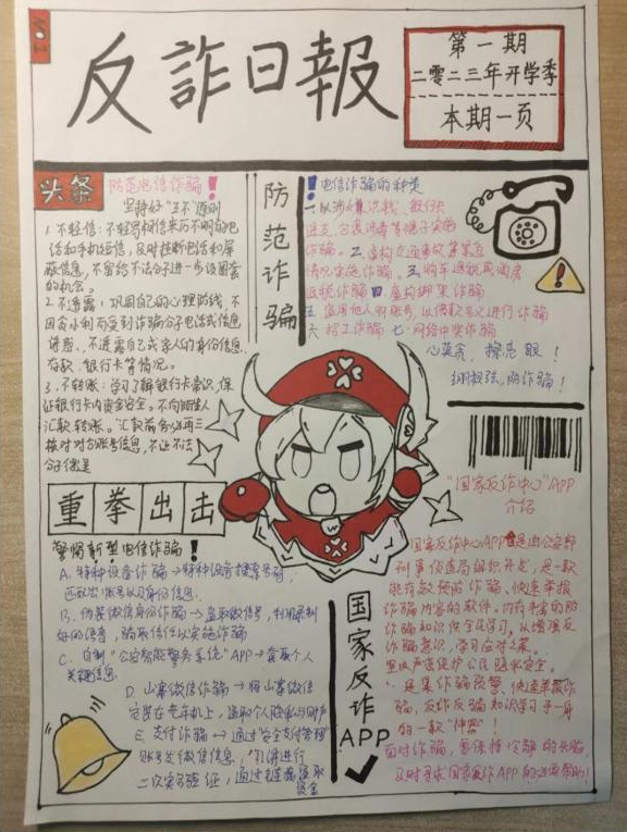 这次比赛不仅让同学们增长了知识,提高了安全意识,也展示出了大家对安全教育的热情和创造力。通过手抄报的形式,同学们将理论知识与现实生活相结合,让安全教育更加鲜活、形象,更能引起广大师生的关注。最后,再次恭喜获奖的同学们!希望大家能够以此为契机,更加注重安全教育,切实保障自己和他人的安全。(王喆)