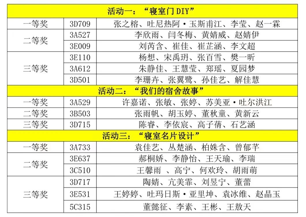 举办了“‘宿’说青春,‘E’见钟‘寝’”寝室文化节。本次活动以寝室为单位开展,包含寝室门DIY、我们的宿舍故事、寝室名片设计三个活动。在评选的过程中,一份份温馨活泼,明亮清雅,同时又展现了成员个性特点的作品脱颖而出。接下来,就让我们从获奖作品中领略各个寝室的风采吧!