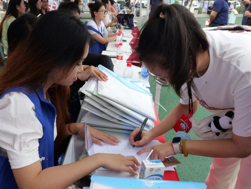 新生报到处,实现从校门口到报到处的“一条龙服务”,由志愿者全程陪同引导新生完成报到流程,营造了良好的迎新氛围。报到现场,志愿者们热心为新生答疑解惑,递上娱乐游戏