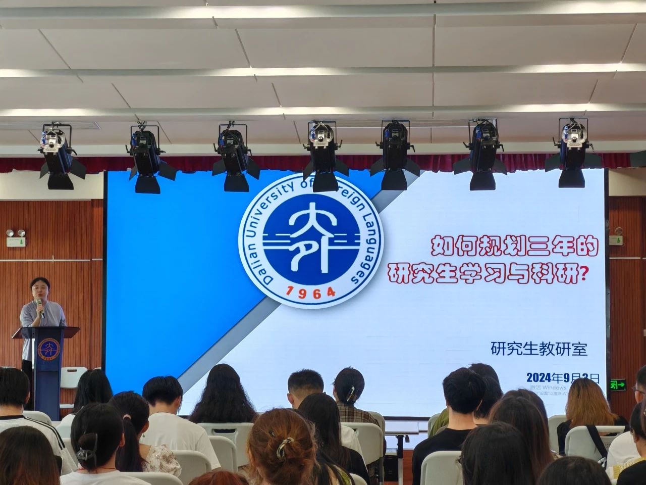 研究生教研室主任韩秀副教授对研究生三年的学业及学术科研规划进行了讲解,内容涉及学制与学位安排、课程安排、成绩要求等。韩秀副教授还着重介绍了从学生身份向初级研究者身份转变时可能遇到的挑战,并鼓励研究生新生们积极参与申报项目、撰写论文、学术论坛等校内外学术科研活动。
