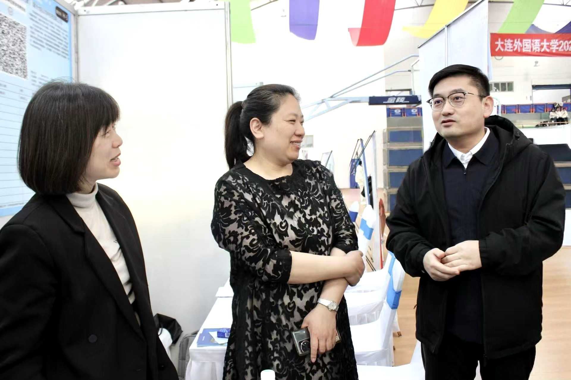 招聘会期间,学校党委书记王伟辰、校长丛明才一行到沈河区莱塔思教育培训中心招聘展台前,与娱乐游戏平台大全