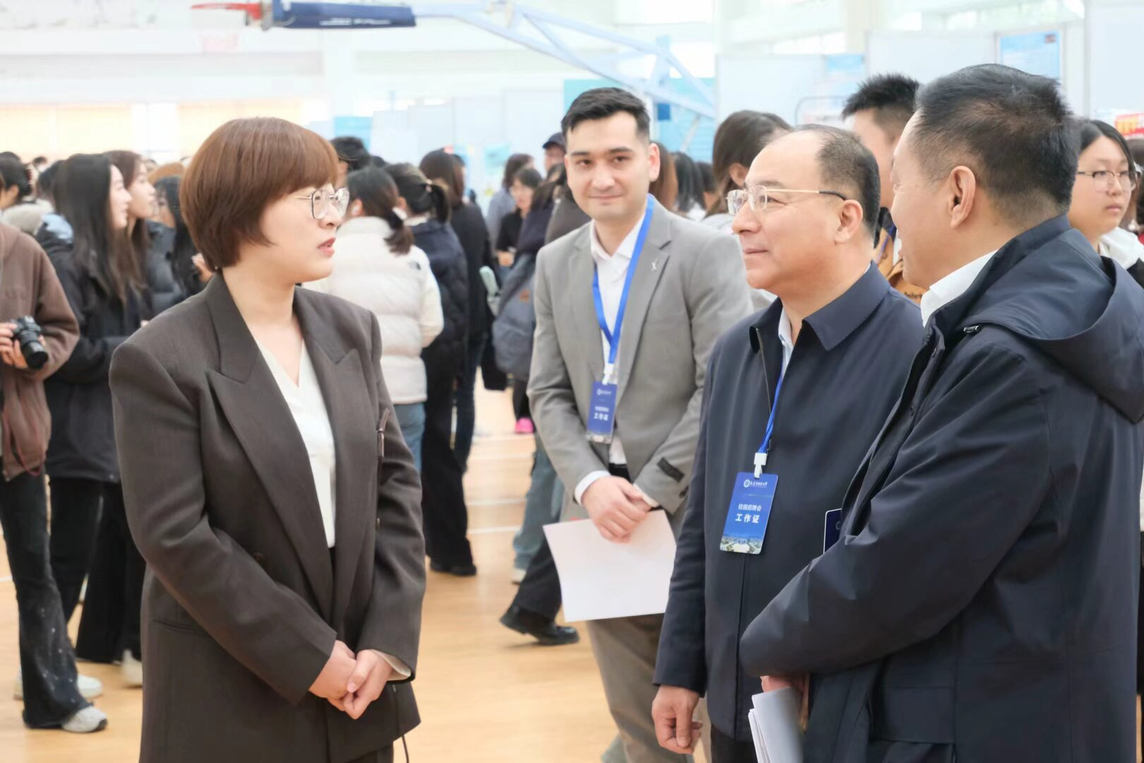 党委书记梁若冰、团委书记曲镜达、2021级辅导员达尼亚尔江·亚力坤江、2022级辅导员李延奇、2023级辅导员吴曼、2024级辅导员王艺凝参与此次招聘会。