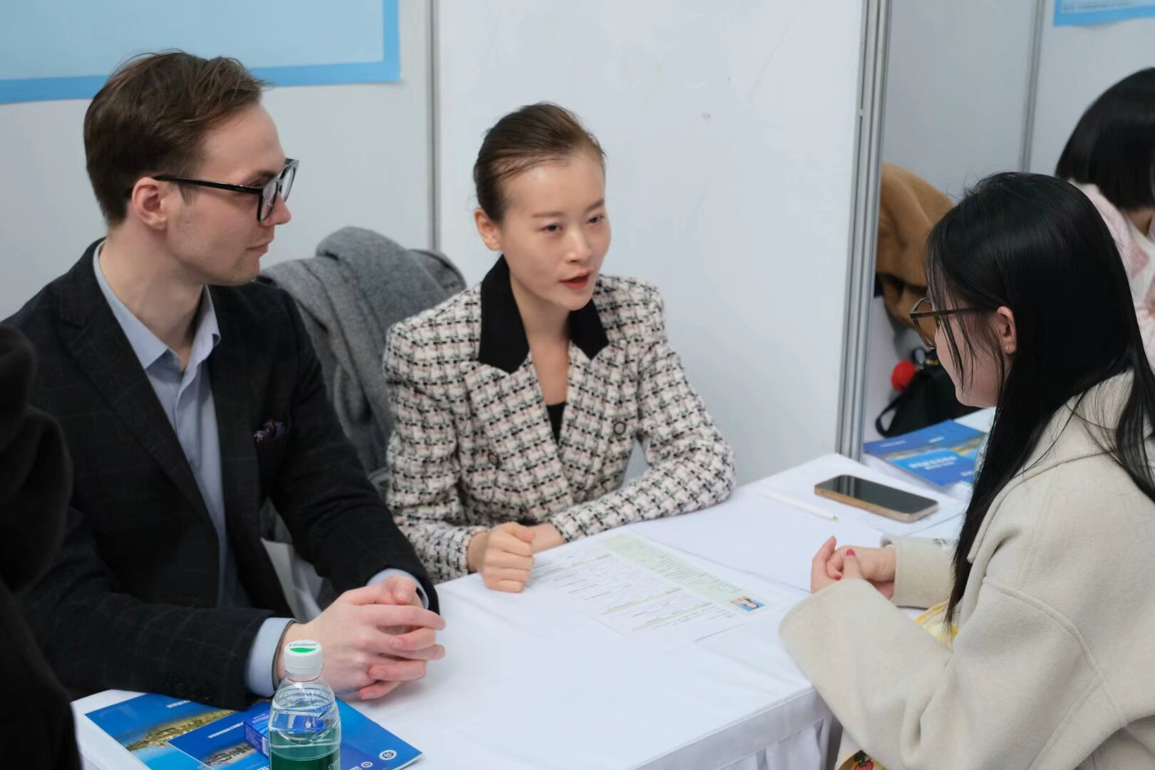 2010届校友刁彤女士就相关专业招聘事宜与用人单位及求职学生进行深入交流。