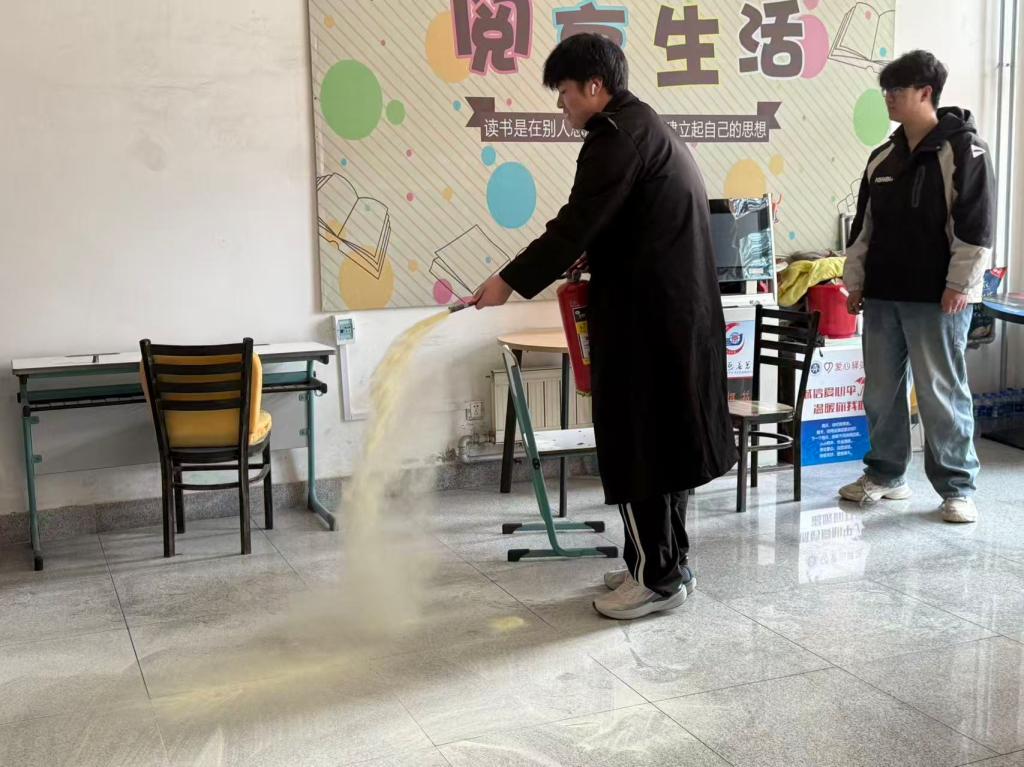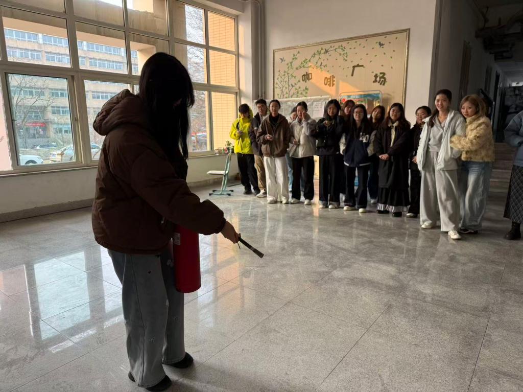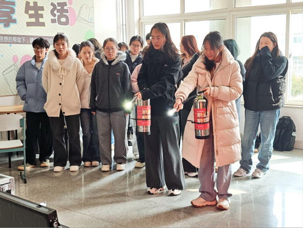 本科生及研究生各班组织全员实操,每位同学熟练掌握灭火器使用方法,同时提醒学生需严格遵守宿舍安全规定,杜绝违章电器、明火等行为,从源头防范火灾风险。