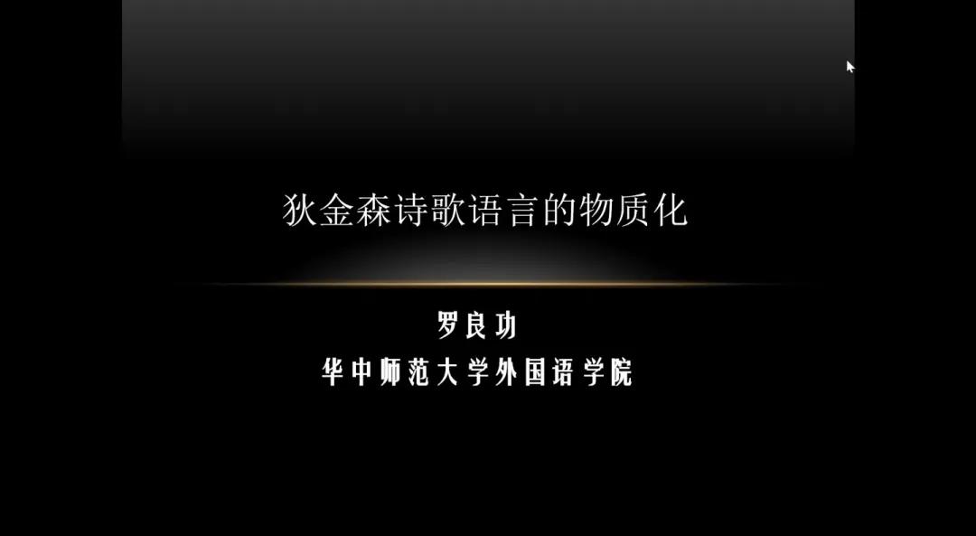 罗良功教授结合语言学理论和跨学科知识,从概念界定、诗歌语言物质化的形式及诗歌语言物质化的诗学意义三个方面展开,对艾米莉·狄金森的诗歌进行了文本分析。罗教授认为,诗歌中的单词不仅是语言符号,同时也是物质材料。诗歌可以通过词语声音和视觉上的外在形式进行重构。狄金森在其诗歌创作的过程中,通过对音韵节奏的改造、以声音决定意象的使用、改变书写形式等方式,实现诗歌语言的物质化的应用,对语言仅作为符号系统进行解构,强调了语言物质表征本身的意义,使诗歌不仅仅局限于文字文本,而是借用声音文本和视觉文本增强诗歌阅读过程中的感官体验。狄金森极具反叛性的语言观和诗学观在对现代、后现代主义诗人产生深远影响的同时,也与许多后现代语言学观点不谋而合。