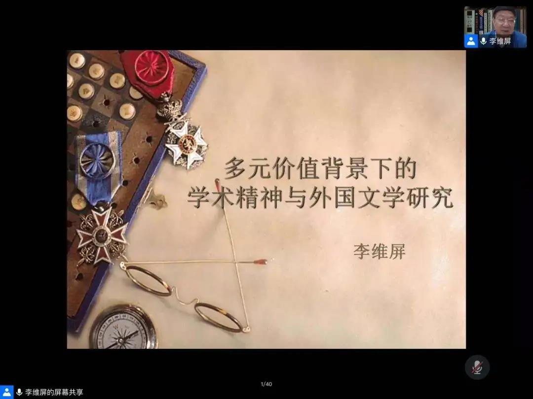文学研究所邀请,通过腾讯会议平台为我校师生做了题为“多元价值背景下的学术精神与外国文学研究”的学术讲座。本次讲座由吕春媚院长主持,我院教师及硕士研究生共同聆听了此次讲座。