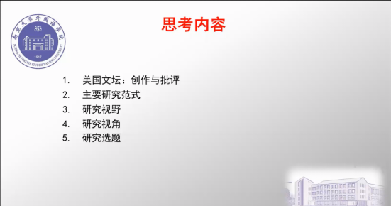杨金才教授从美国文坛的创作与批评、主要研究范式、研究视野、研究视角与研究选题五部分对美国文学研究进行了梳理和分析。