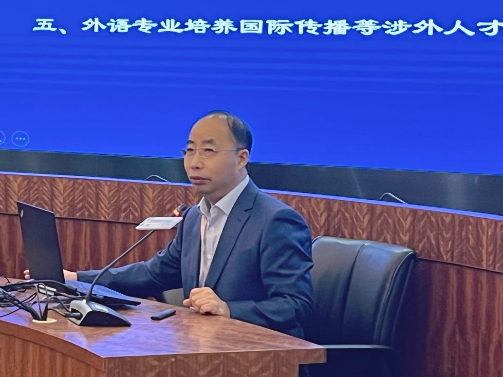 7月29日上午,常俊跃教授担任了2023国际英语教育中国大会“外语学科院长/系主任国际传报论坛”主旨报告嘉宾,以“明目标,固基础,通中外,强实践——对培养国际传播能力的思考与实践”为题进行主旨报告。常俊跃教授在发言中倡导变革外语外语教育理念,更新课程体系,开发全新教材,改进教学方法,强化实践训练,系统培养国际传播能力。