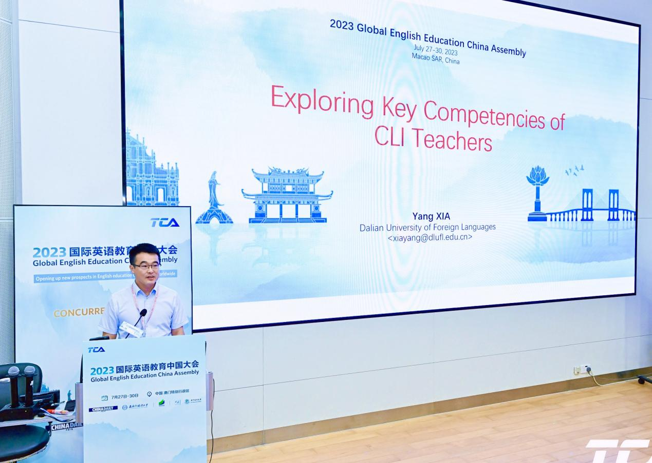 7月28日下午,常俊跃教授主持了2023国际英语教育中国大会“内容语言融合课程体系的建构与实践”专题研讨,并以“从语言导向培训到内容语言融合教育——外语教育理念的变革”为主题进行了发言。常教授以大连外国语大学英语专业为例,介绍了内容语言融合教育理念(CLI)的内涵及其实践效果。夏洋教授以“内容语言融合课程教师教学能力发展研究”为主题进行了专题发言,基于对内容语言融合课程教师开展的实证研究,分享了中国外语教育环境下内容语言融合课程教师教学能力的构成及教学能力发展路径。吕春媚教授进行了题为“内容语言融合课程的任务型教学”的专题发言,以国家级一流本科课程《跨文化交际》为例,介绍了内容语言融合教学理念与任务型语言教学相结合的教学模式。