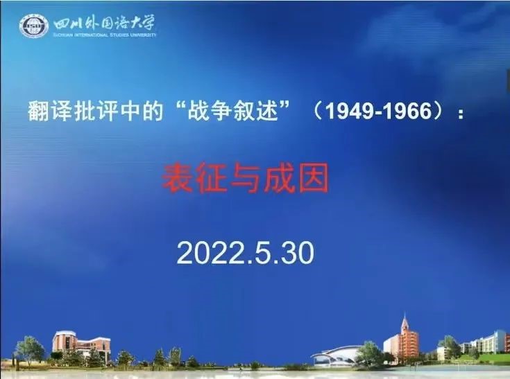 邀请,通过腾讯会议平台为我院师生做了题为“翻译批评中的‘战争叙述’(1949-1966):表征与成因”的学术讲座。本次讲座由副院长刘晓晖教授主持,我院部分教师、硕士研究生和翻译方向本科生共同聆听了此次讲座。