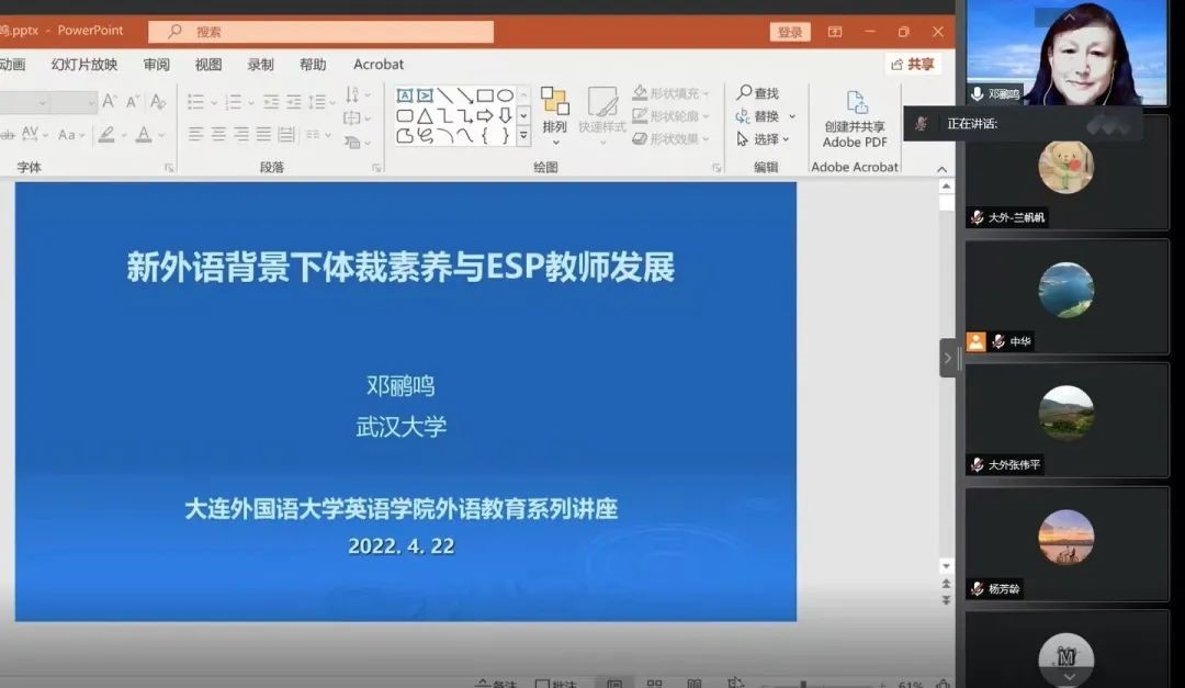 外语教育研究中心和外语教育研究基地的邀请,通过腾讯会议平台为我院师生做了题为“新外语背景下体裁素养与ESP教师发展”的学术讲座。本次讲座由科研处泰中华副处长主持,我校部分教师、硕士研究生共同聆听了此次讲座。