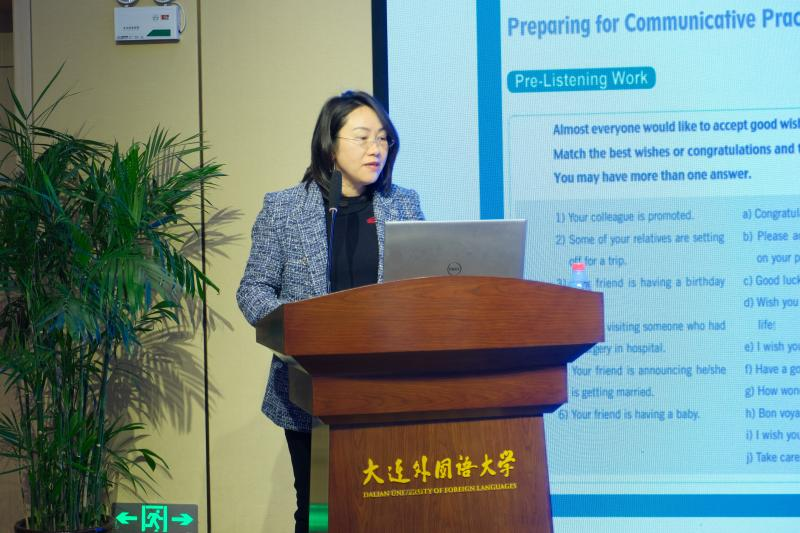 王丹副教授聚焦内容语言融合理念下《英语语音》课程的课程建设,从语音教学的现实挑战、教材改革、教学改革及效果等方面分享了大连外国语大学语音教学以及《新英语语音教程——正音与品韵》(高等教育出版社)教材开发的经验。