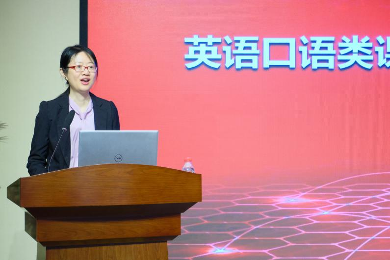教师张罗丹进行了《新英语口语教程:沟通与交流(下)》(高等教育出版社)第十一单元教学示范。她结合自身教学经验,分享了在融合教育理念下,如何围绕“PPT”教学模式,开展有针对性的教学。