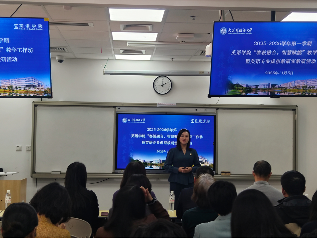 召开2025-2026学年第一学期“赛教融合,智慧赋能”教学工作坊暨英语专业虚拟教研室教研活动。工作坊由副院长罗俏鹃主持,全体教师参加。