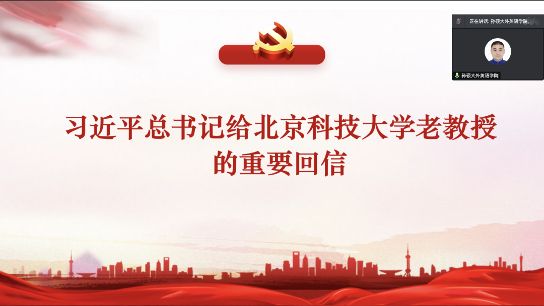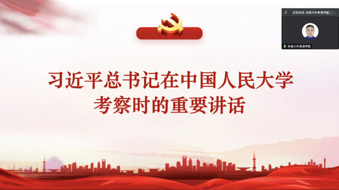党委理论学习中心组在线上召开专题学习扩大会议,深入学习贯彻习近平总书记在中国人民大学师生座谈会上的讲话等重要文件精神。会议由党委副书记孙硕主持,学院党委理论学习中心组成员、党支部书记、专职组织员和全体辅导员参加会议。