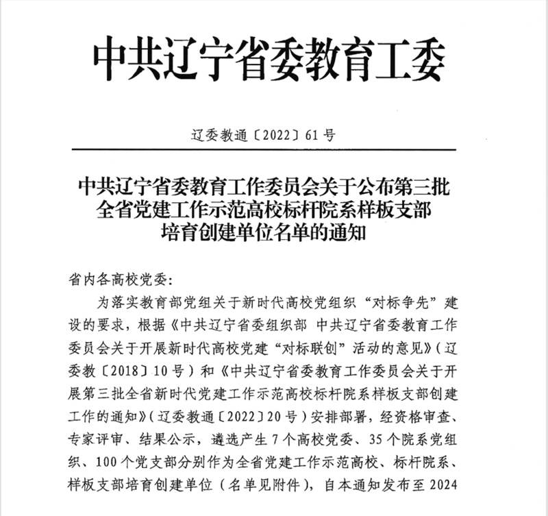 在党的二十大即将召开之际,我校党建工作喜报频传。近日,在辽宁省委教育工委公布的高校党建工作评选结果中,娱乐游戏平台大全