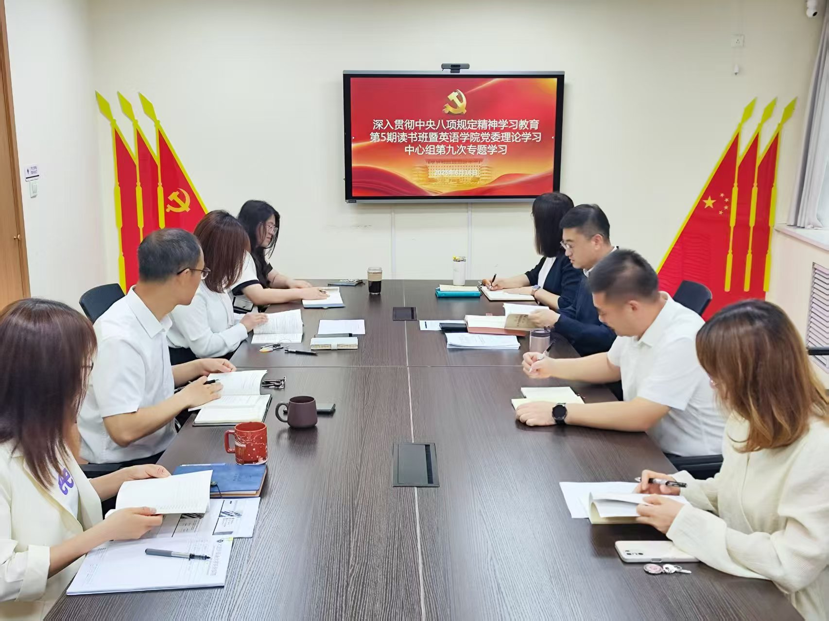党委理论学习中心组召开深入贯彻中央八项规定精神学习教育第5期读书班专题学习会议。党委理论学习中心组成员参加会议,学院党委书记梁若冰主持会议。