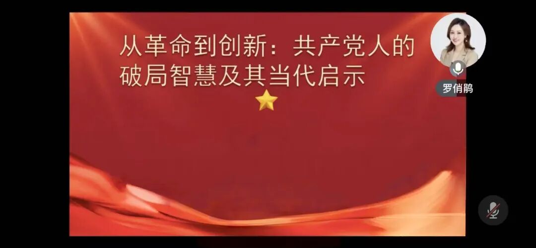 副院长罗俏鹃为同学们带来《从革命到创新:共产党人的破局智慧及其当代启示》专题课程,揭示了共产党人的破局智慧,彰显其对当代的深刻启示。罗院长以党史三大创新突破为切入点,向同学们介绍了中国共产党的伟大征程。此外,罗院长讲授了创新方法论,引导同学们树立坚定不移的理想信念,培养创新精神。通过展示青年党员创新实践的成功案例,罗院长鼓励同学们秉持创新精神,勇于开拓新领域,肩负起新时代赋予青年的历史使命。