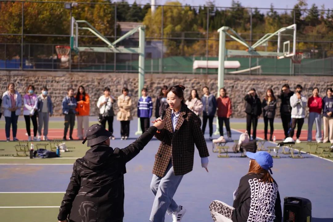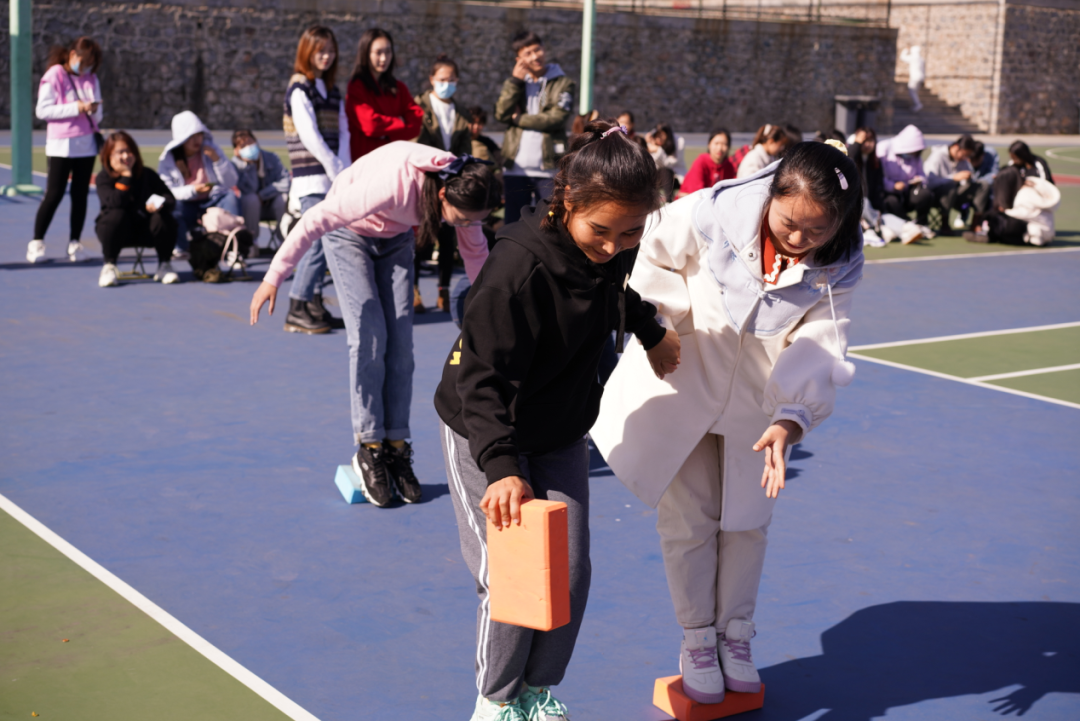 随后进行的“桃花朵朵开”游戏更是考验了大家的默契程度和临场反应能力。游戏期间,曲老师积极参与各项活动,并时刻提醒同学们注意安全问题。