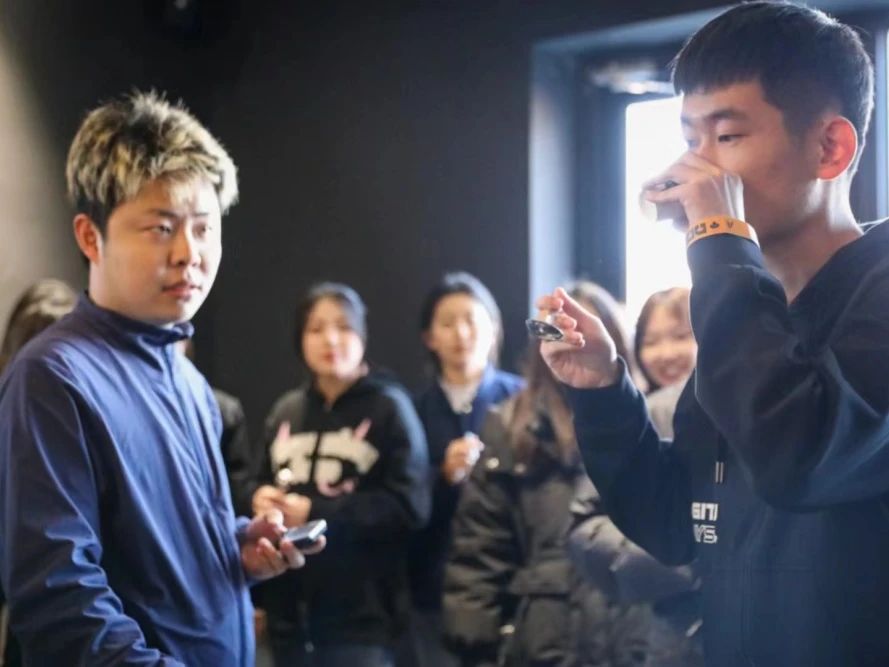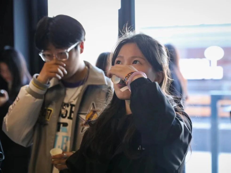 在三角杯测赛中,同学们需要通过品尝找出三杯咖啡中不同的一杯,在细嗅咖啡浓厚淳朴香味的同时,体验不同口感对味蕾的淬炼。三轮比赛中,每轮的晋级者还收获了咖啡师赠予的纪念礼品。